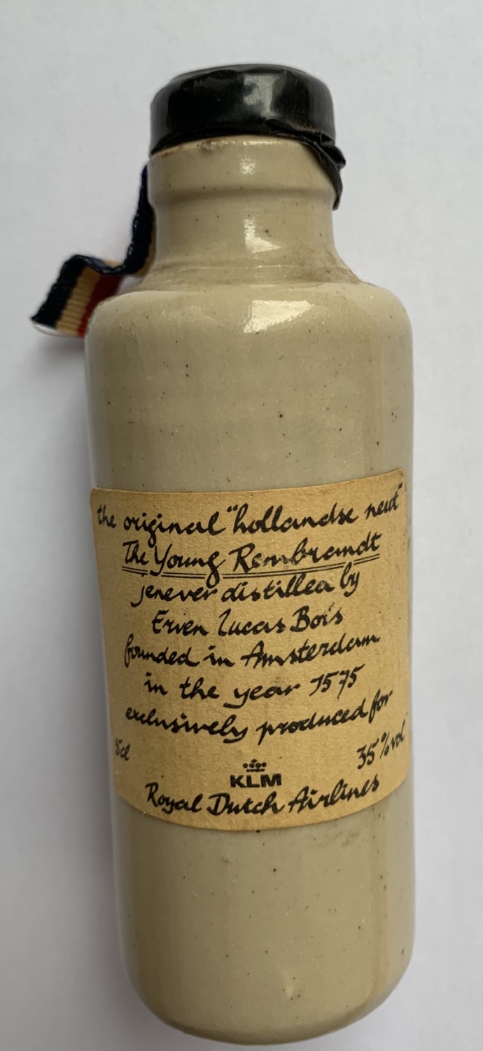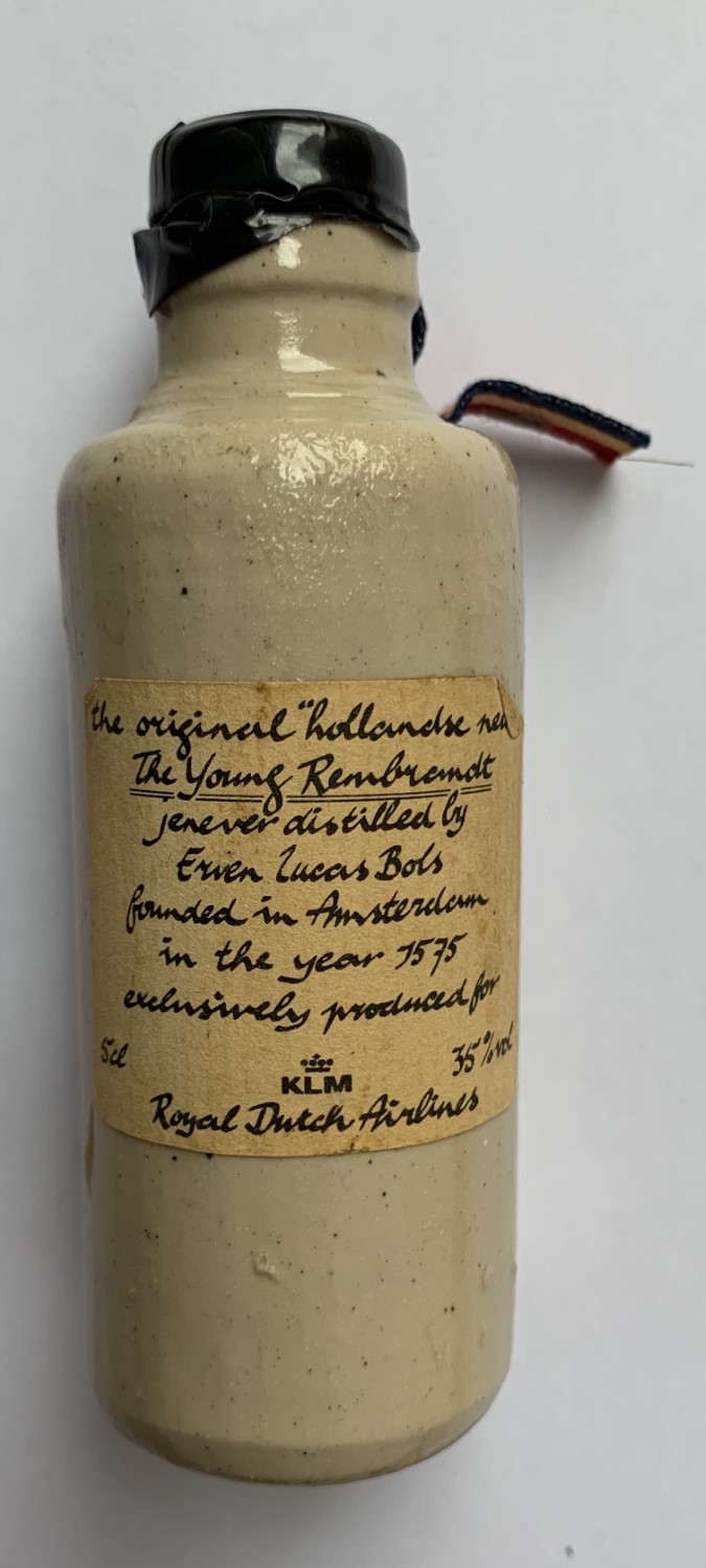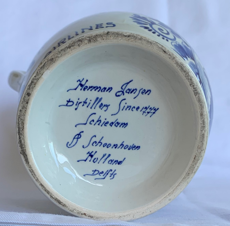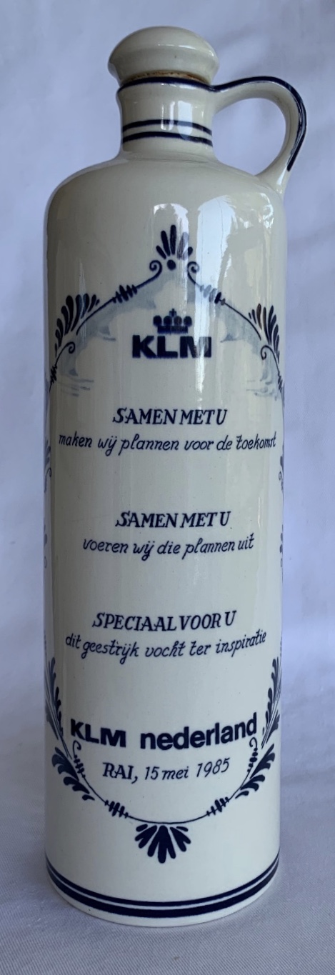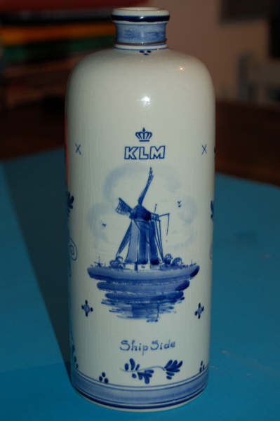 gemaakt tussen 1959 en 1963. KLM is een van de mede-oprichters van Shipside, toen genaamd Shipside belasting vrije wereld On Wheels en nu Shipside belasting vrije Cars. KLM was op zoek naar de Amerikaanse markt en op zoek naar manieren om een Europese reis aantrekkelijker te maken via Amsterdam. Dit resulteerde in 1956 in het aanbieden van auto’s voor de Amerikanen om een Europese tour te maken in een (nieuwe) auto en daarna de auto te verschepen naar Amerika. De fles is waarschijnlijk een Shipside geschenk geweest in die tijd.