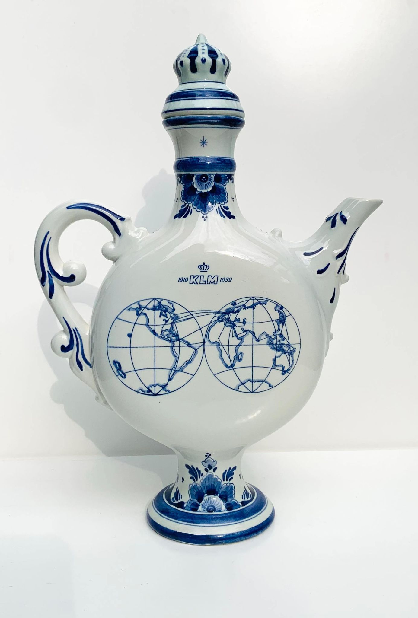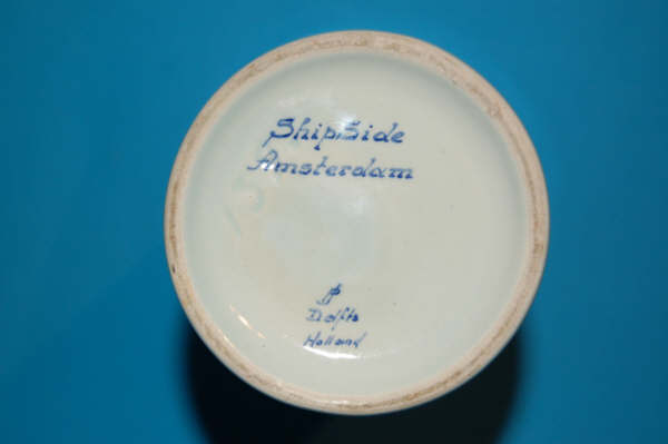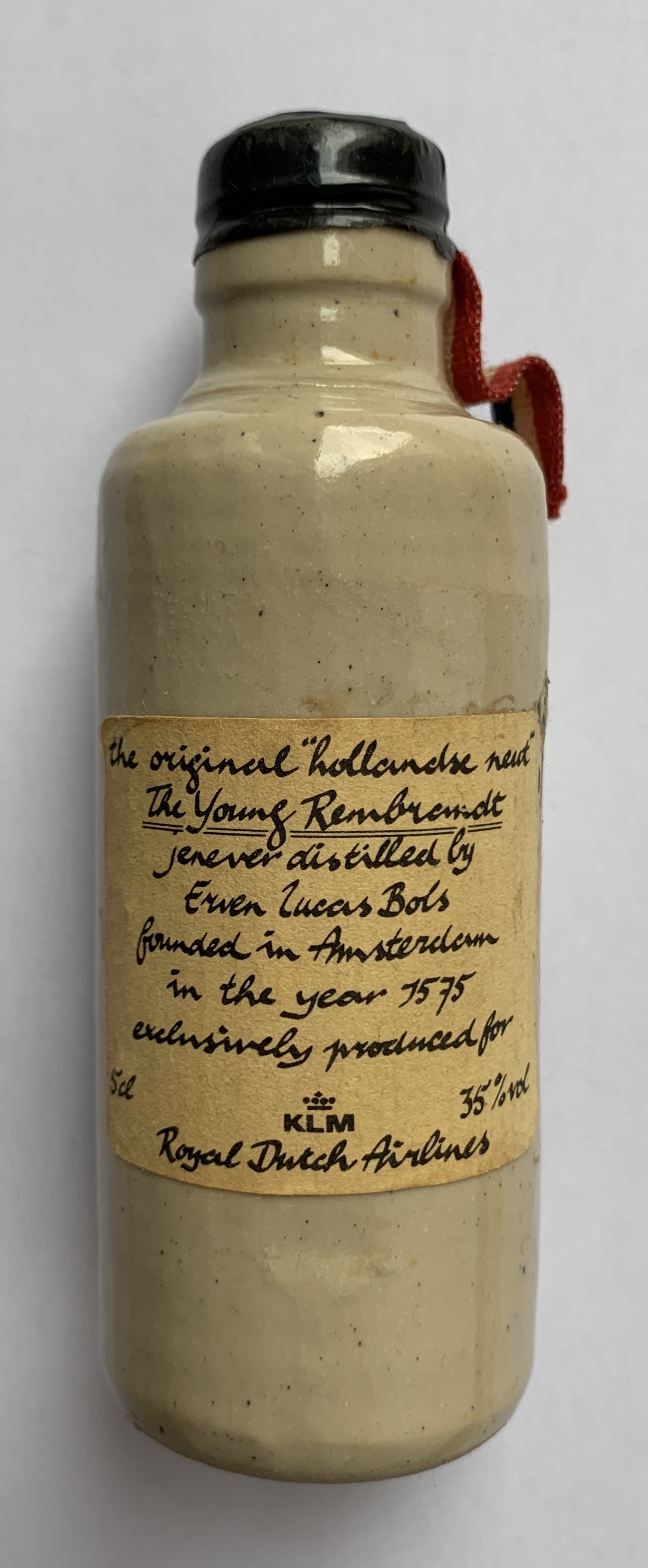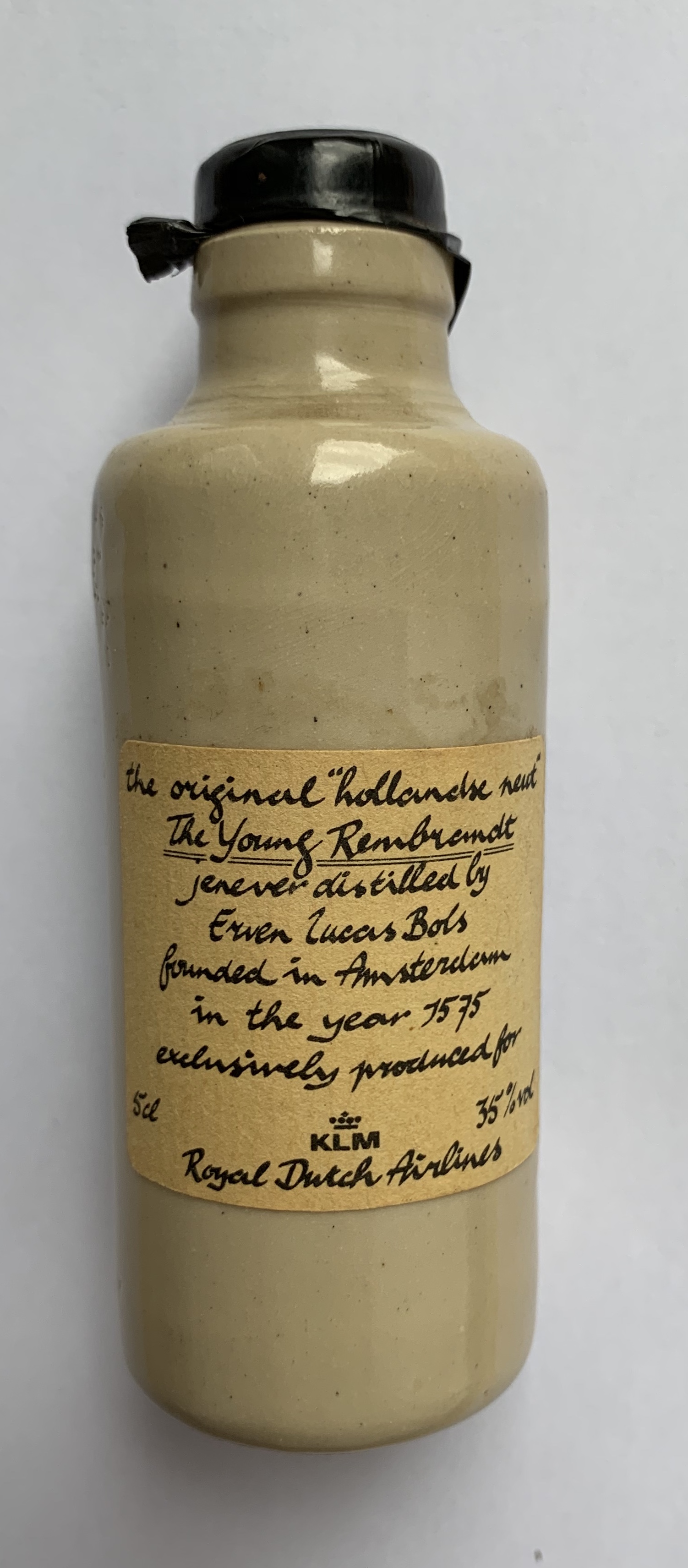 gemaakt tussen 1959 en 1963. KLM is een van de mede-oprichters van Shipside, toen genaamd Shipside belasting vrije wereld On Wheels en nu Shipside belasting vrije Cars. KLM was op zoek naar de Amerikaanse markt en op zoek naar manieren om een Europese reis aantrekkelijker te maken via Amsterdam. Dit resulteerde in 1956 in het aanbieden van auto’s voor de Amerikanen om een Europese tour te maken in een (nieuwe) auto en daarna de auto te verschepen naar Amerika. De fles is waarschijnlijk een Shipside geschenk geweest in die tijd.