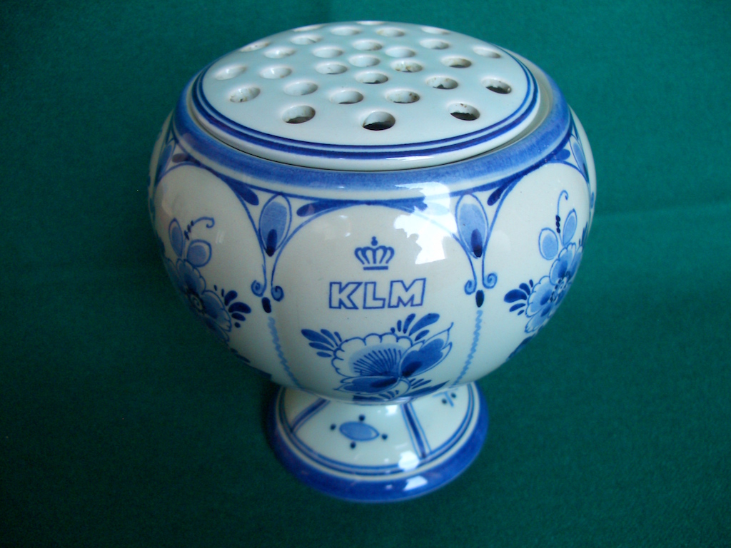Deze zijn in een doosje aan passagiers in de 1e class uitgegeven, samen met een boekje. Er zijn er vijf met KLM onderop. Er zijn twee maten. De kleinste van 0,1 liter en de grotere versie van 0,3 liter.