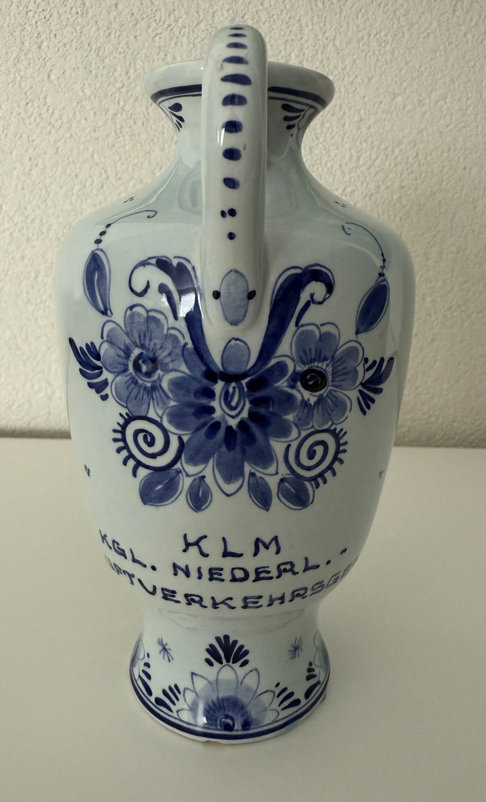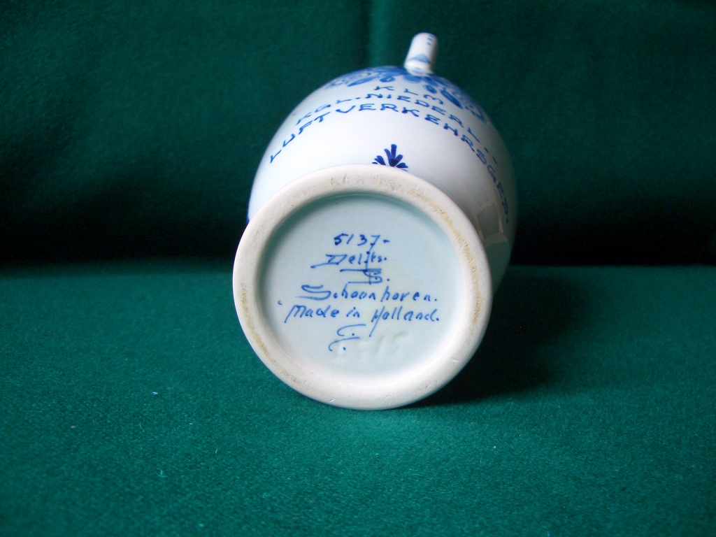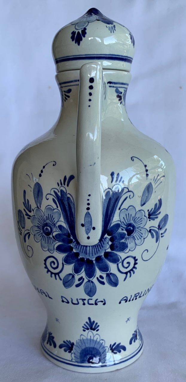 Duitse versie van de hierboven geplaatste kruik met de tekst: KLM / KGL.Niederl. / Luftverkehrsgesetz. Foto’s beschikbaar gesteld door ChrisTravelBlog