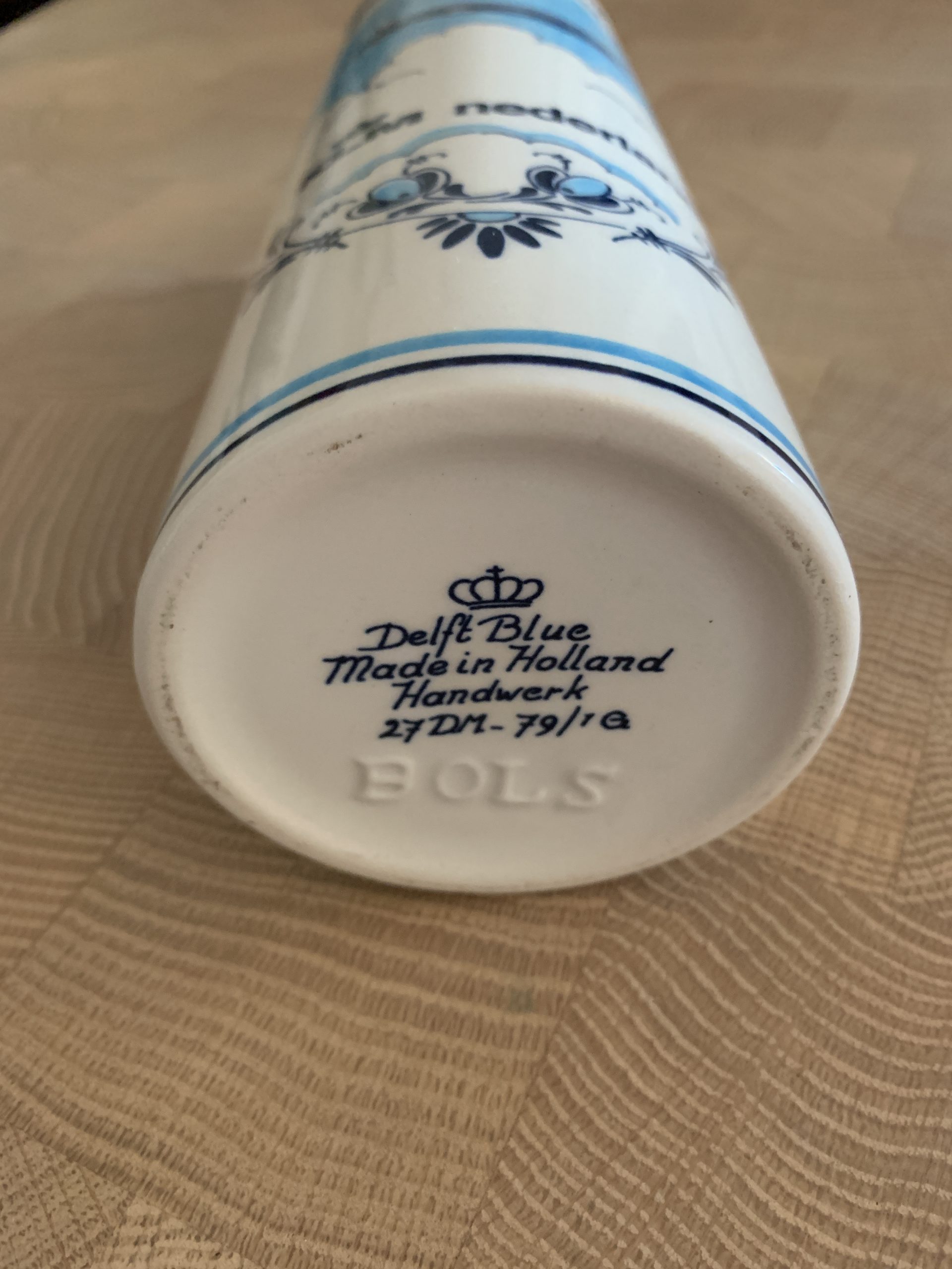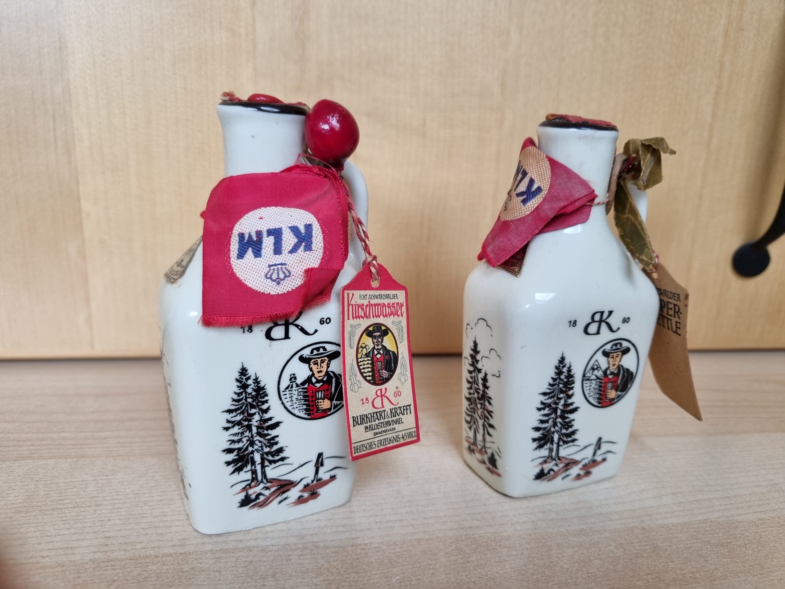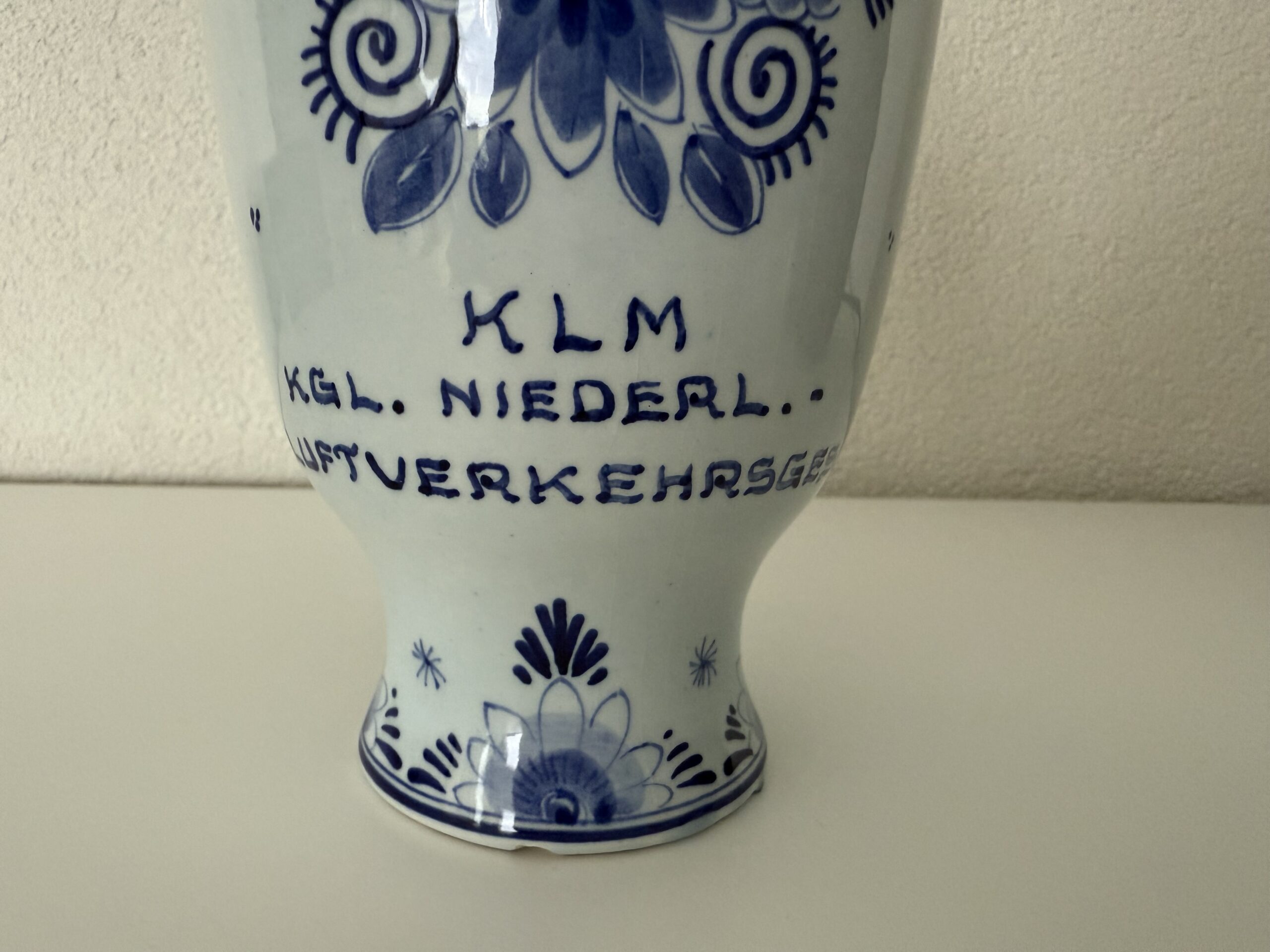 Duitse versie van de hierboven geplaatste kruik met de tekst: KLM / KGL.Niederl. / Luftverkehrsgesetz. Foto’s beschikbaar gesteld door ChrisTravelBlog