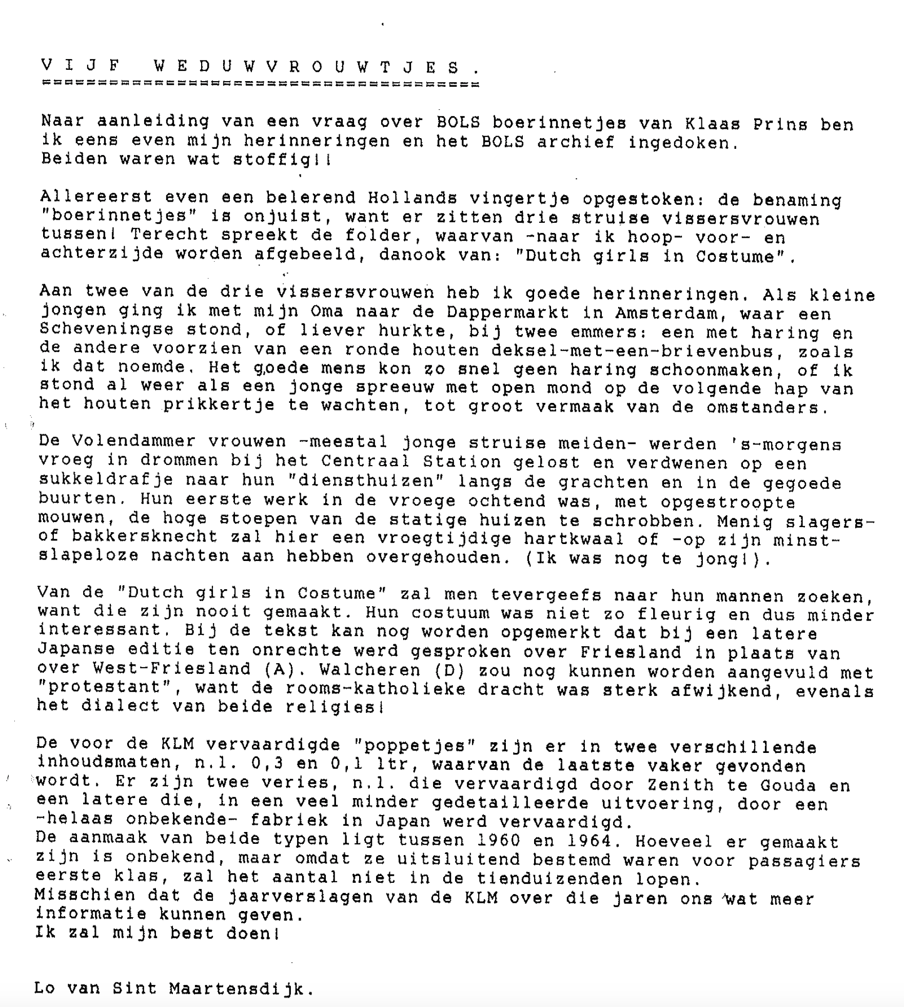 KLM – BOLS – Nederlandse Klederdrachtvrouwtjes uitgereikt begin jaren ’60