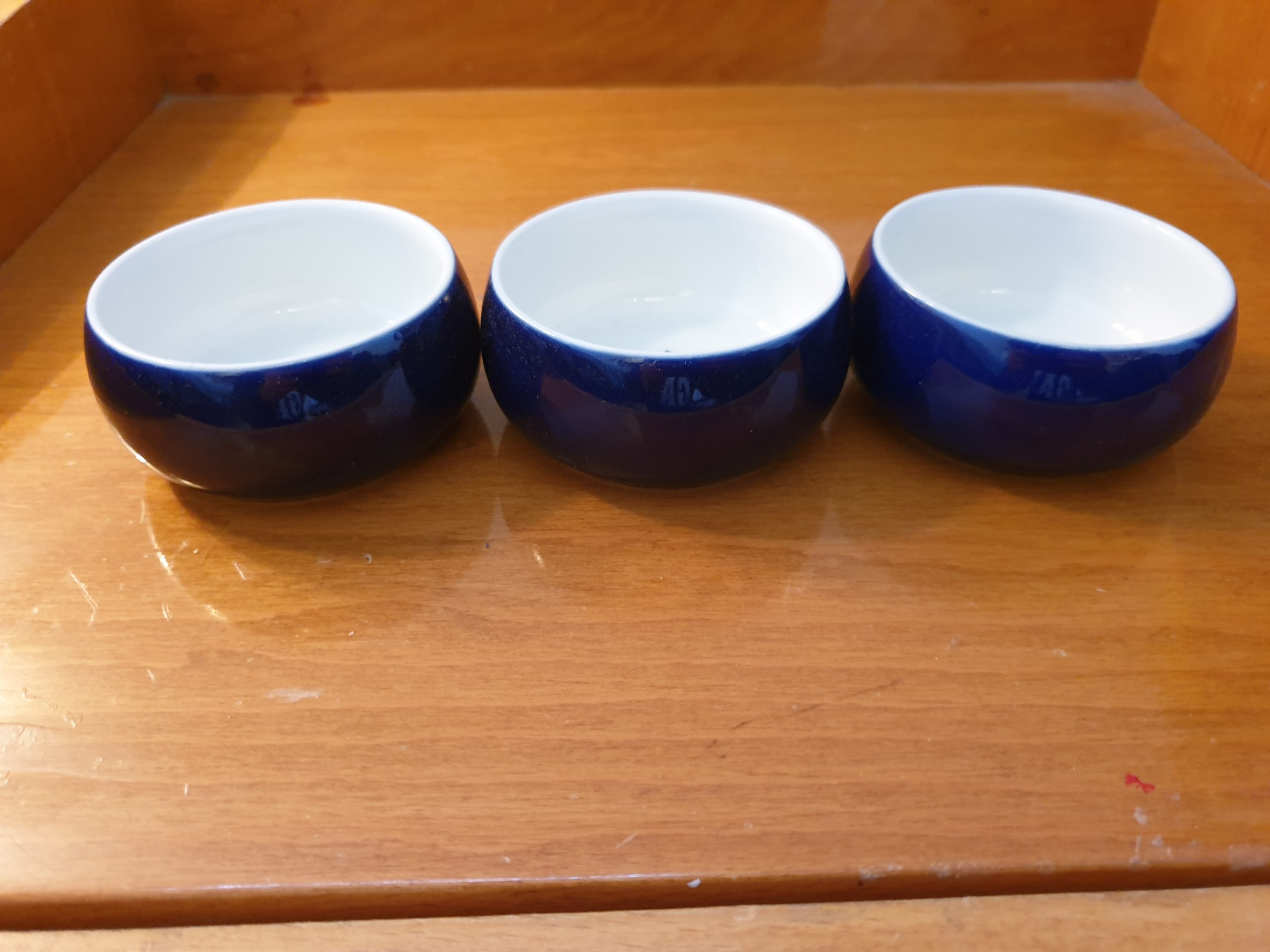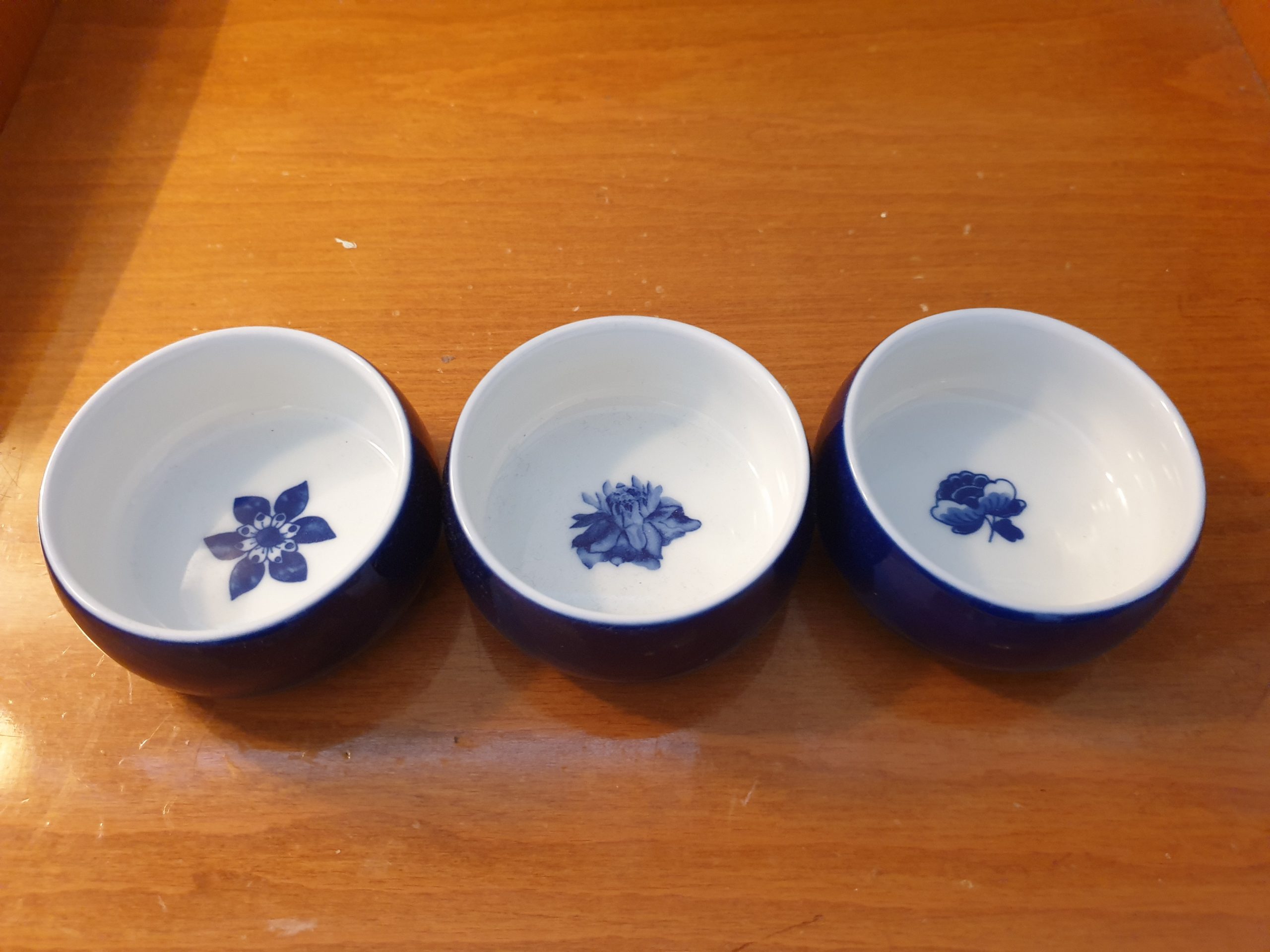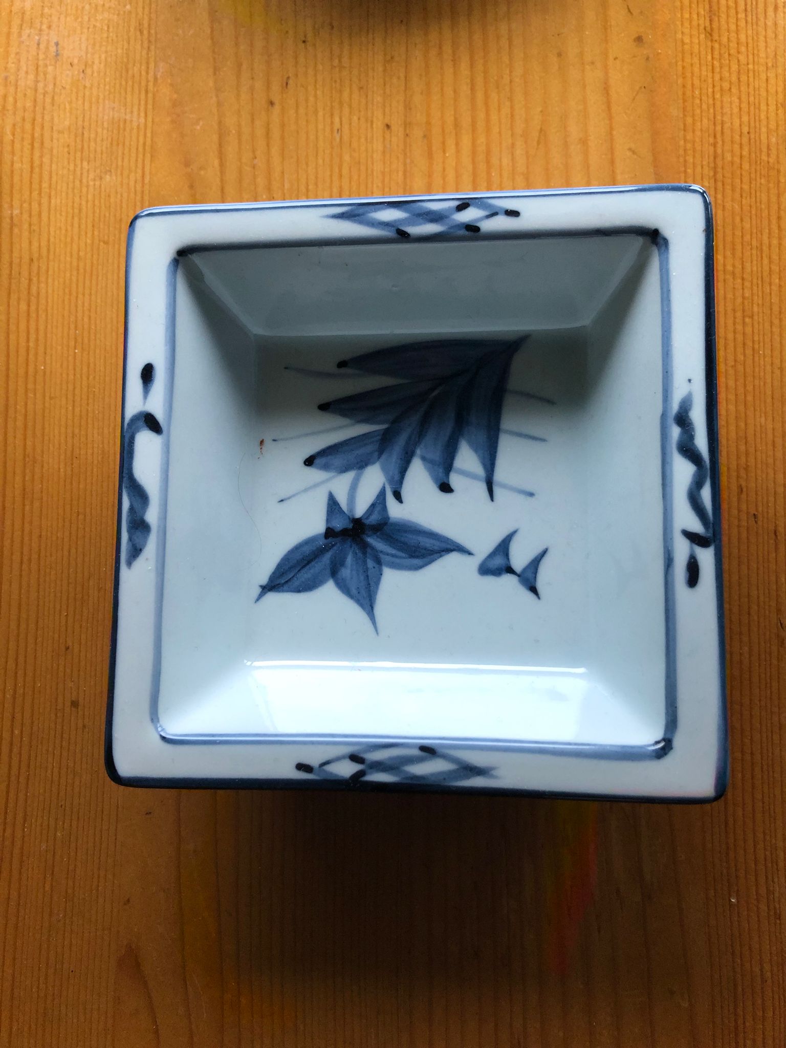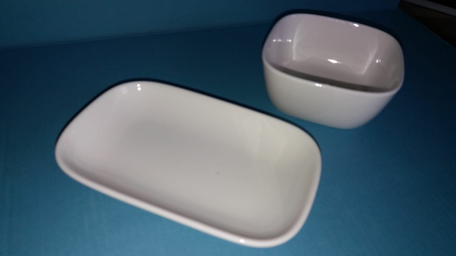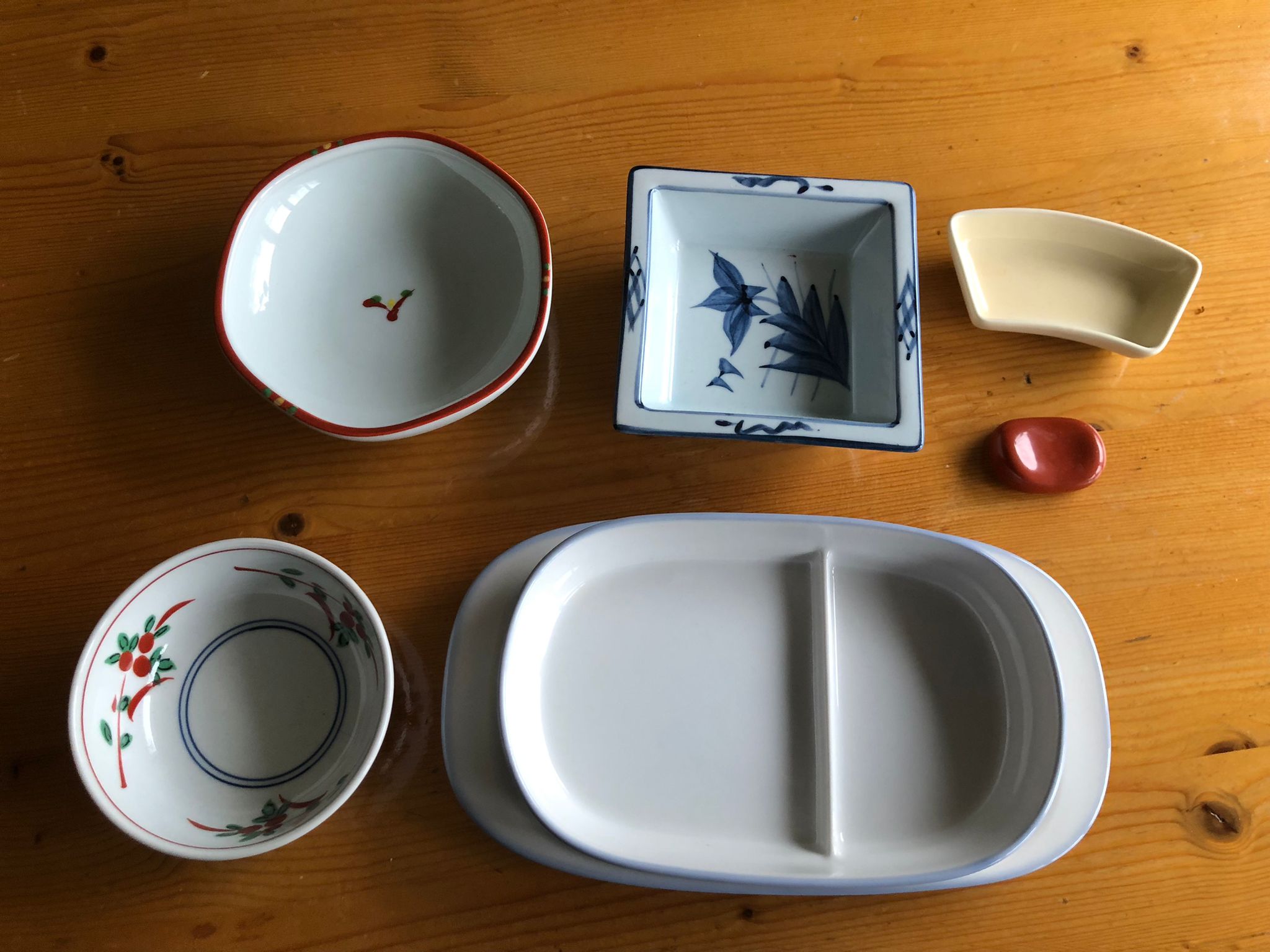 Compleet Aziatisch servies. Dit servies dat werd vroeger gebruikt bij de Route Dedicated Service (RDS) op Japan in de C Class. Kwam toen compleet uit met twee verschillende bordjes, vierkant schaaltje, soja saus schaaltje, klein bakje, miso bowl en copsticks met legger. foto’s ter beschikking gesteld door Letty van der Klugt-Ebes