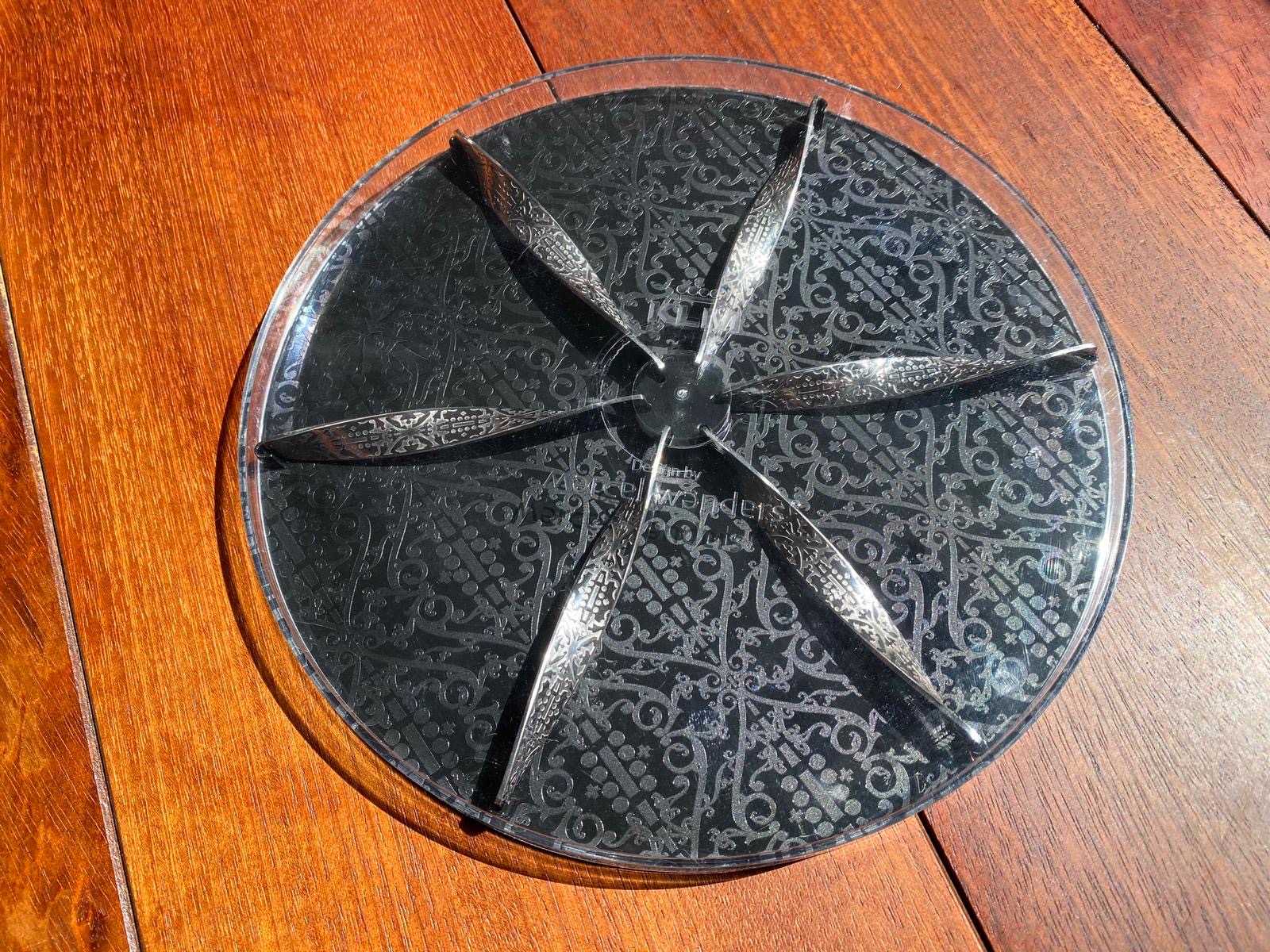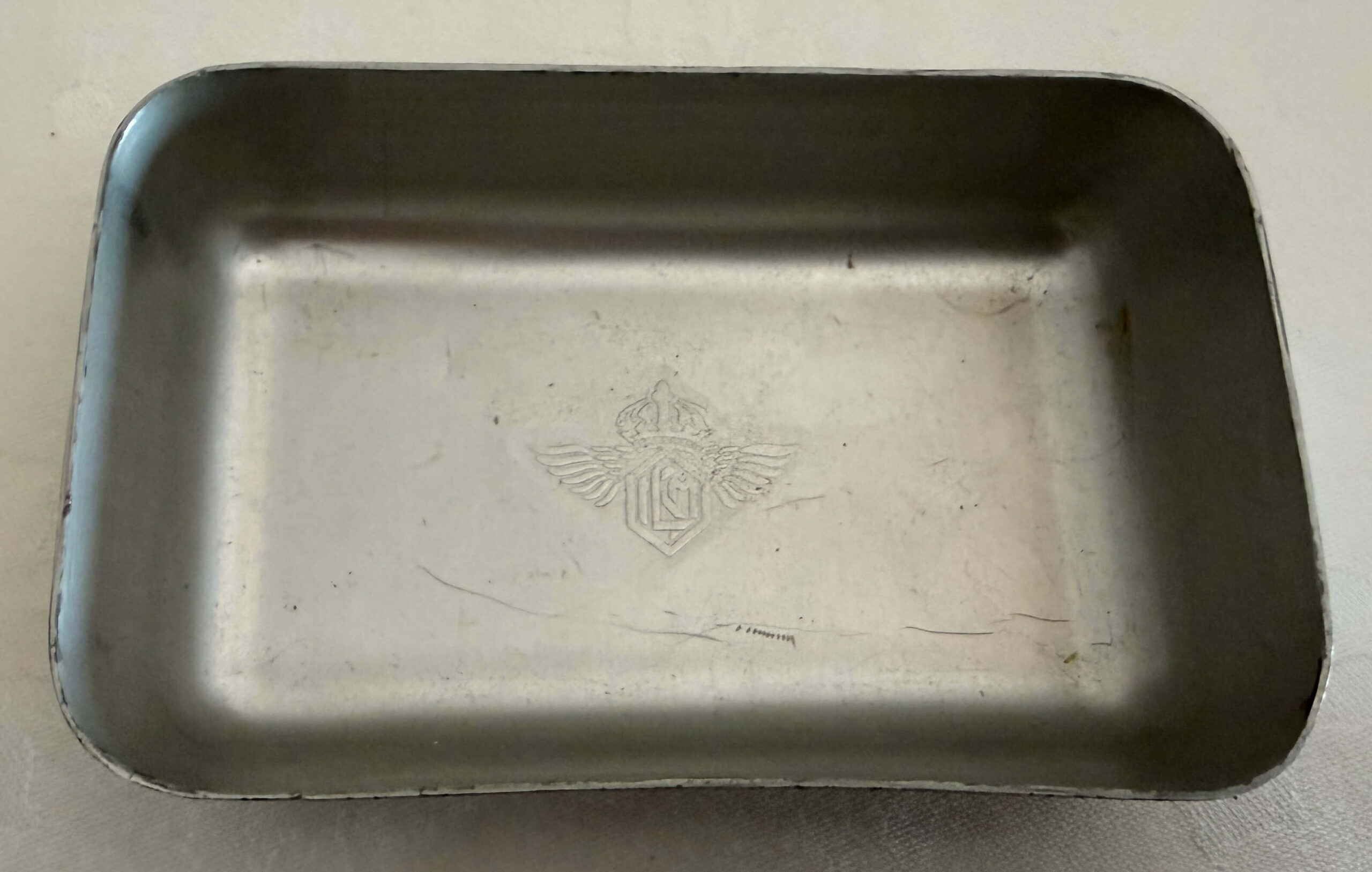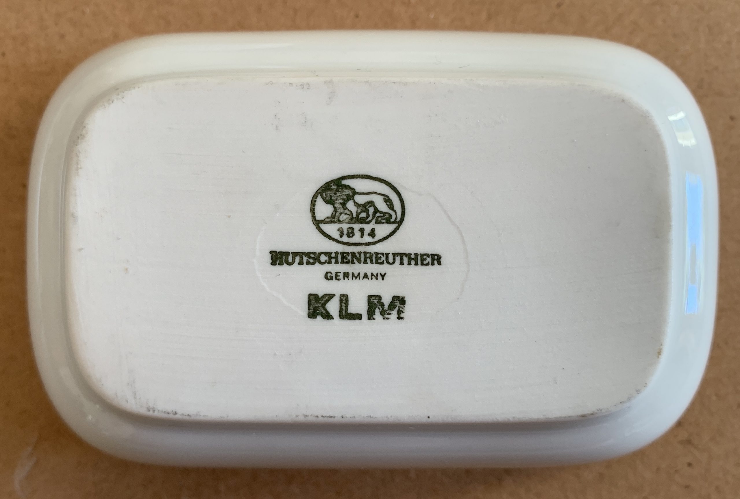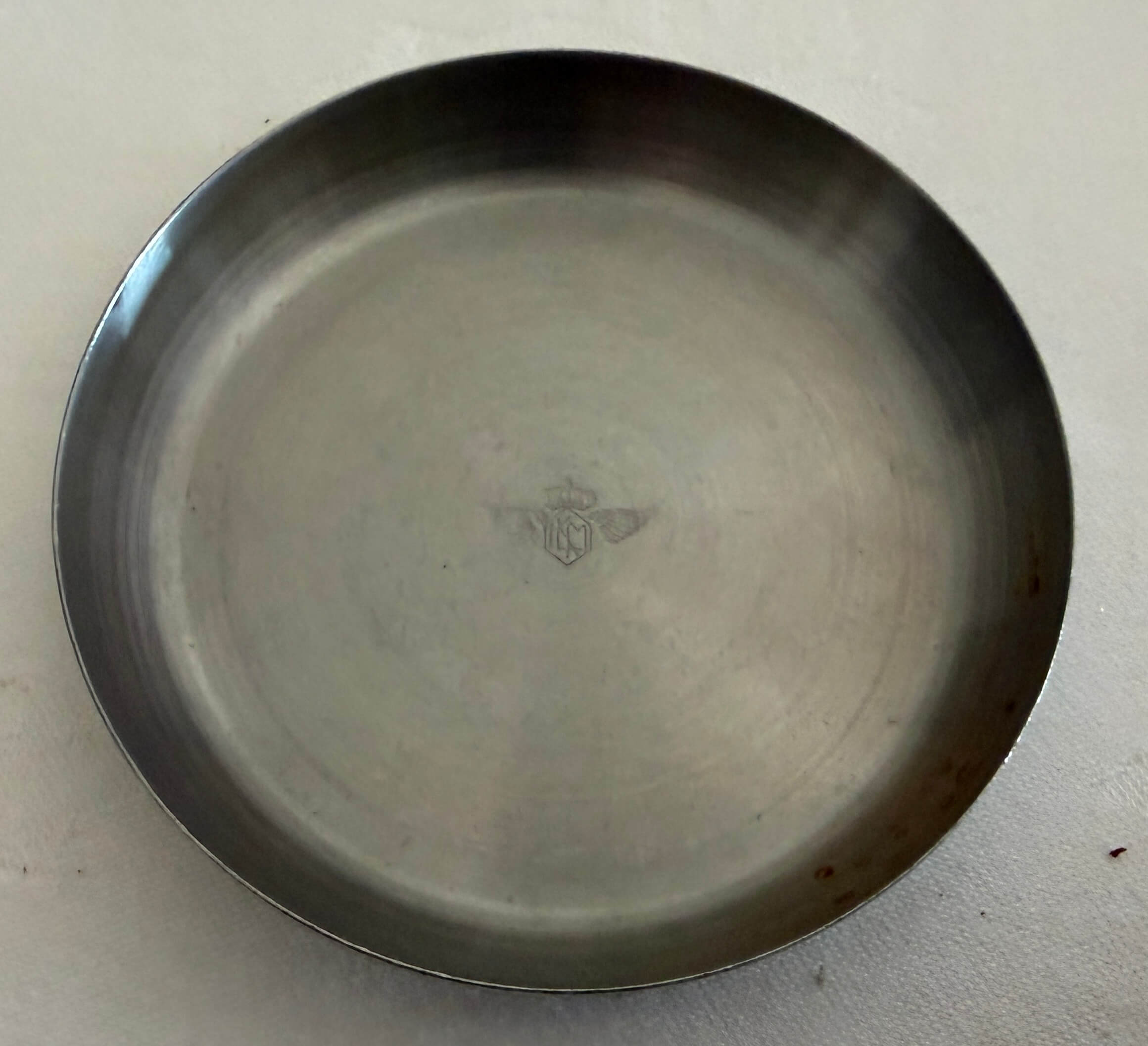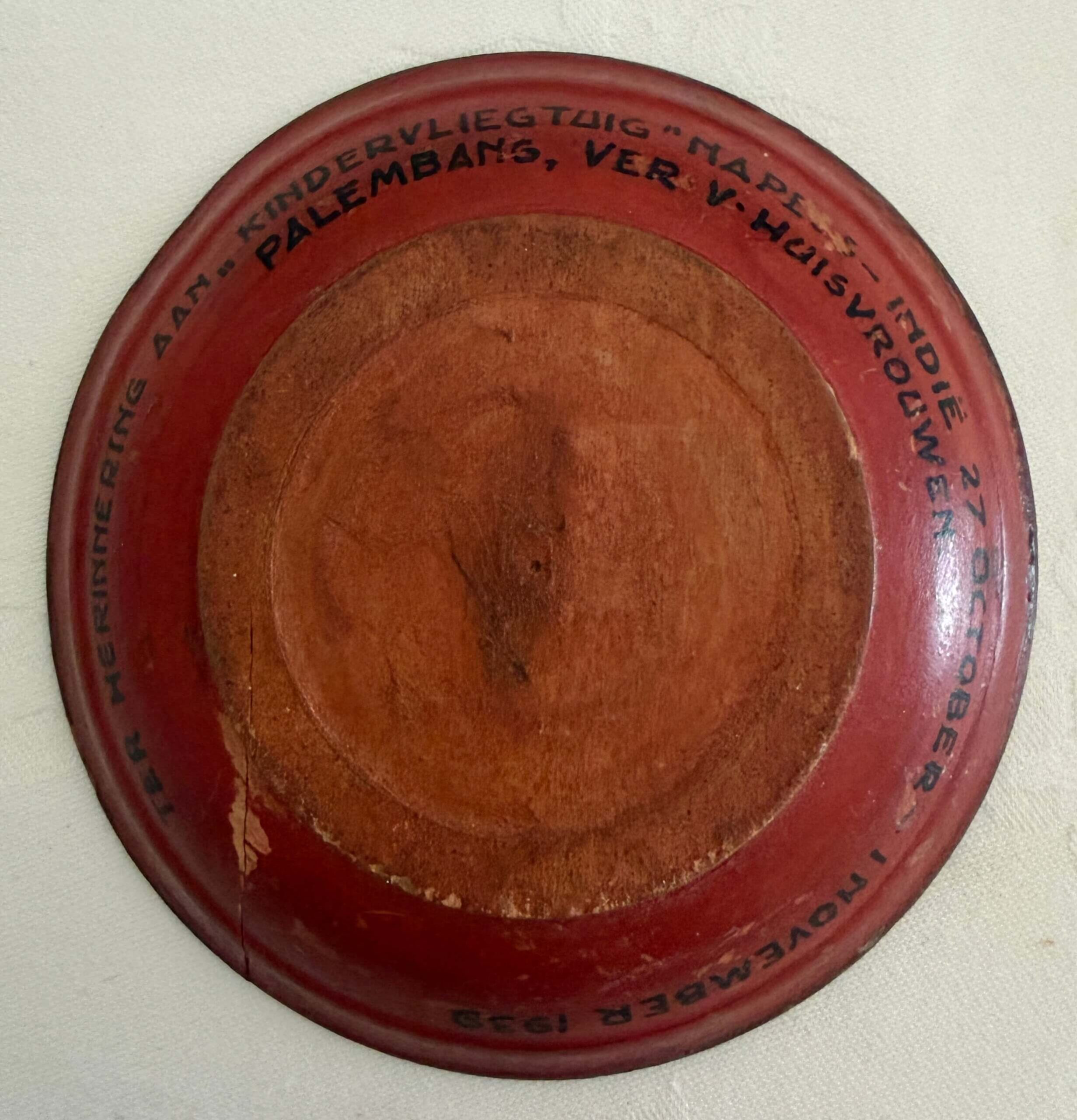 Houten bakje. Op de onderkant staat: Ter herinnering aan “Kindervliegtuig”. Napels – Indië 27 october – 1 november 1939. Palembang, Vereniging van Huisvrouwen. Of het iets met de KLM heeft te maken betwijfel ik eerlijk gezegd.