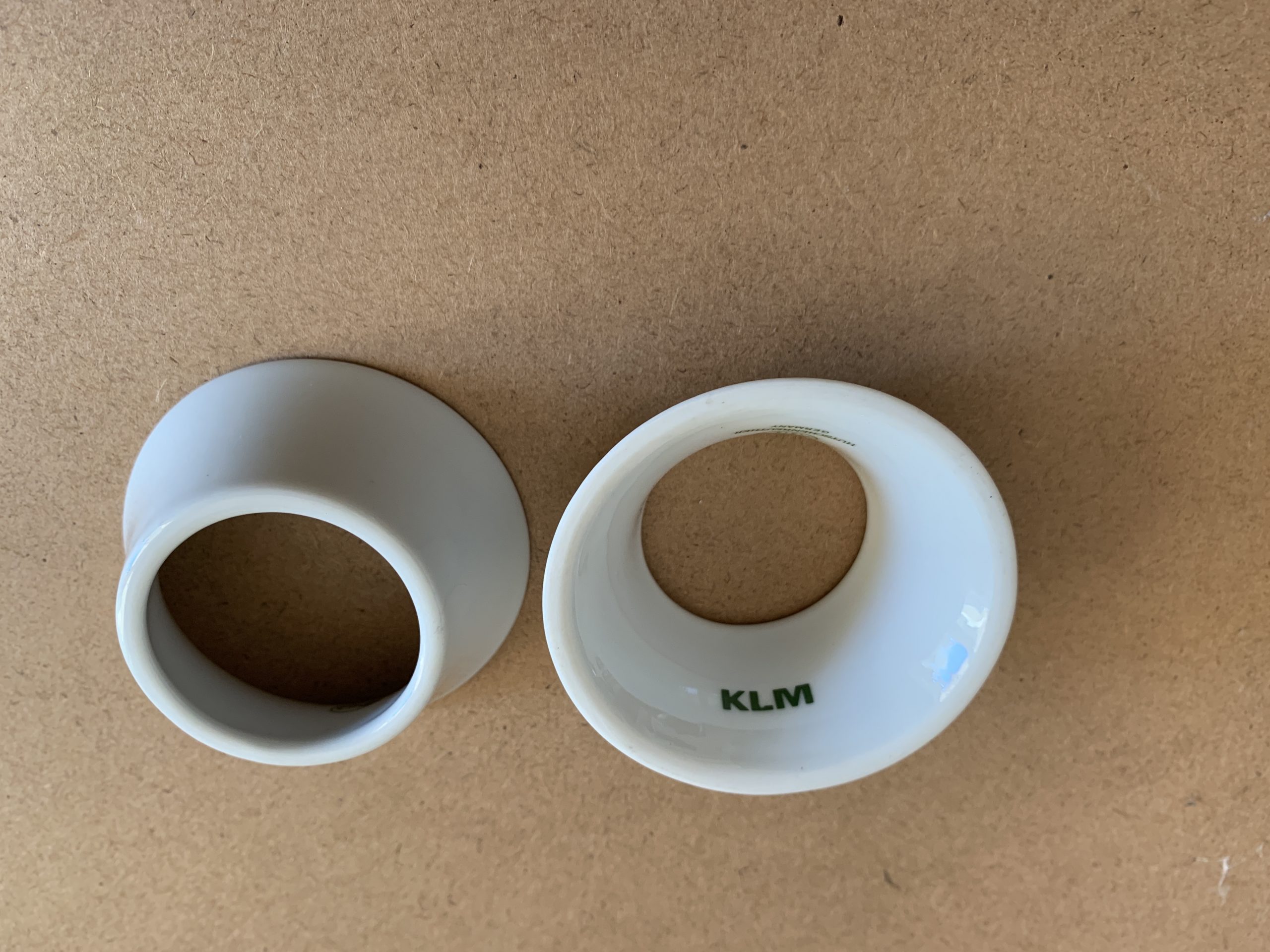 Ik heb 6 porseleinen servetringen KLM met platte onderkant. Iemand wil ze van mij kopen. Ik begrijp dat ze zelfzaam zijn. Wat kan ik daar voor vragen?