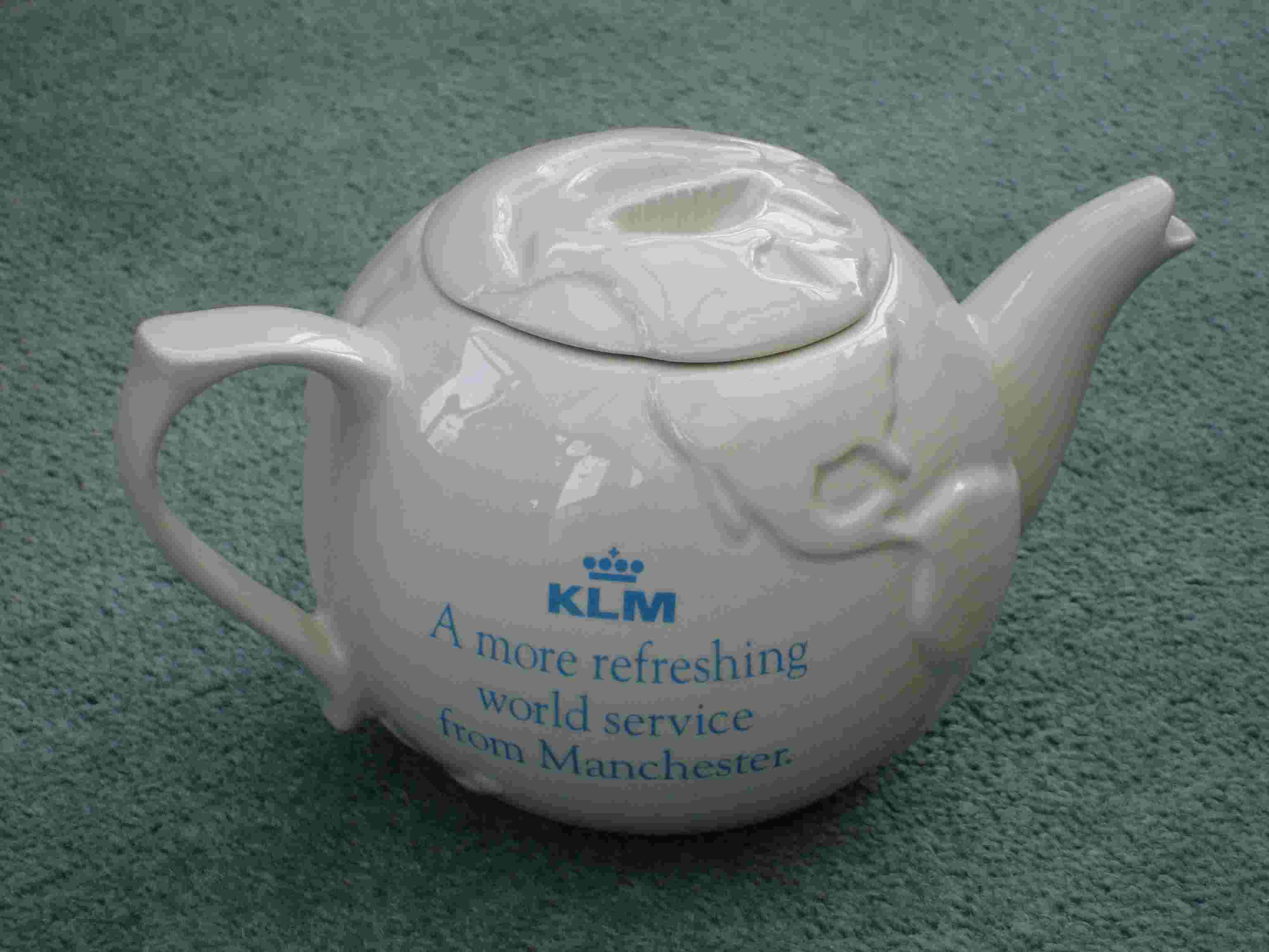 Theepot. Uitgereikt aan touroperators en reisbureaus ter ere van de Internationale vluchten van en naar Manchester