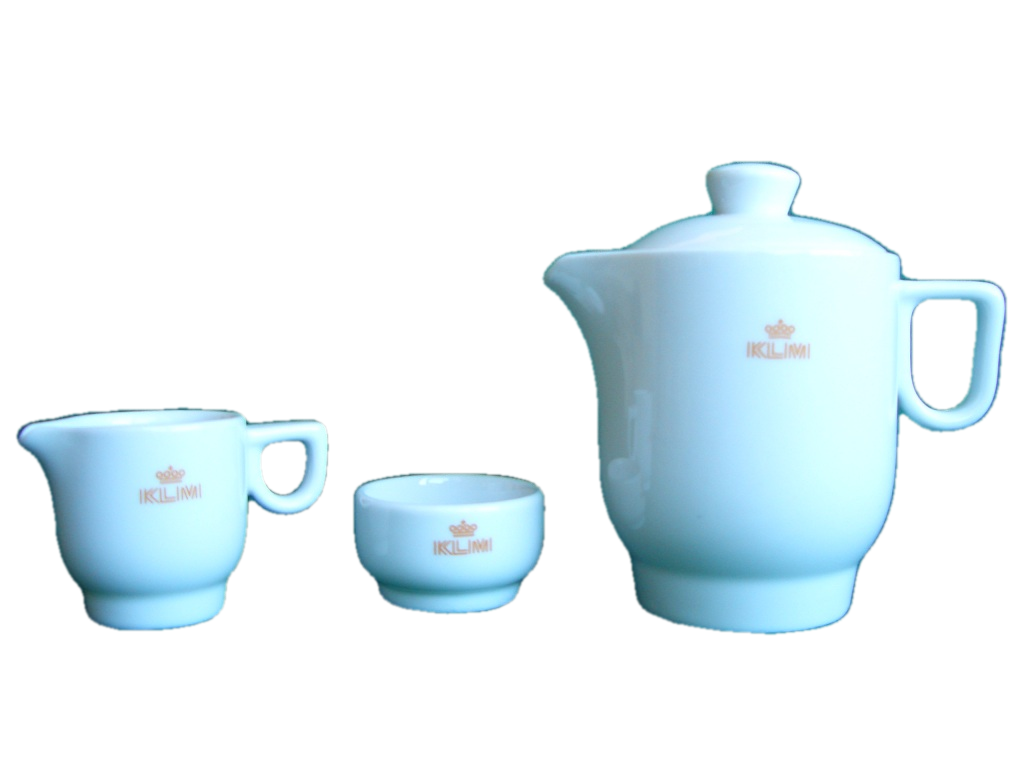 Theepot met melkkannetje en jamschaaltje gebruikt in de 1e Class