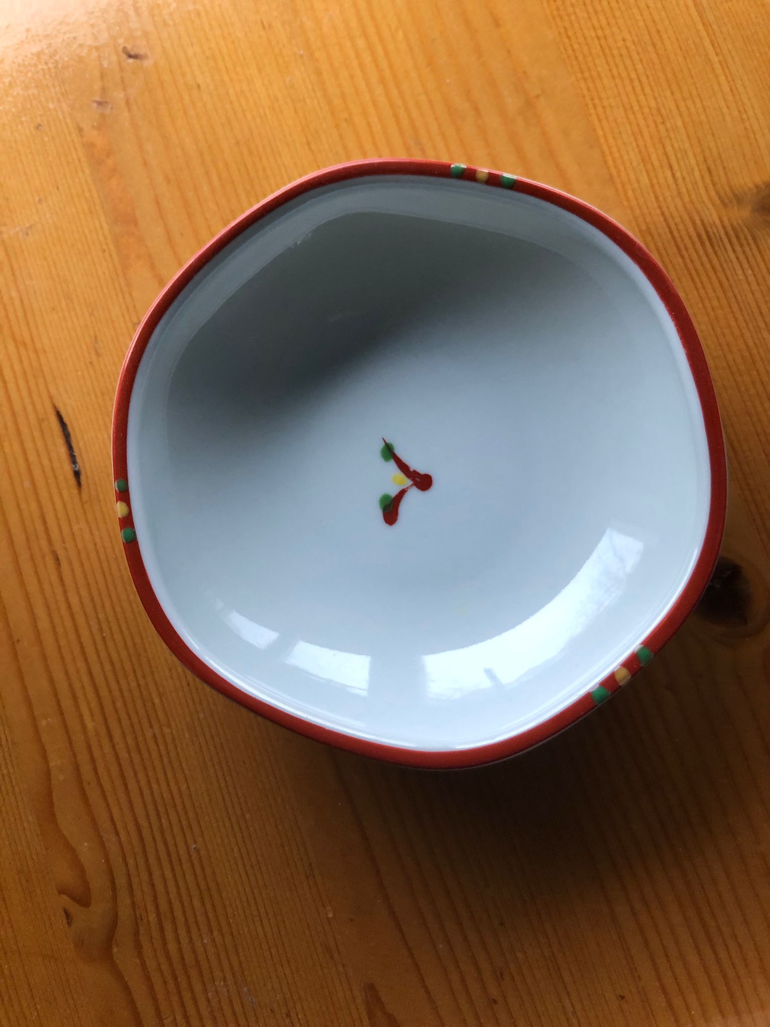 de eerste kom en kop en schotel van melamine vervaardigd, begin jaren 50