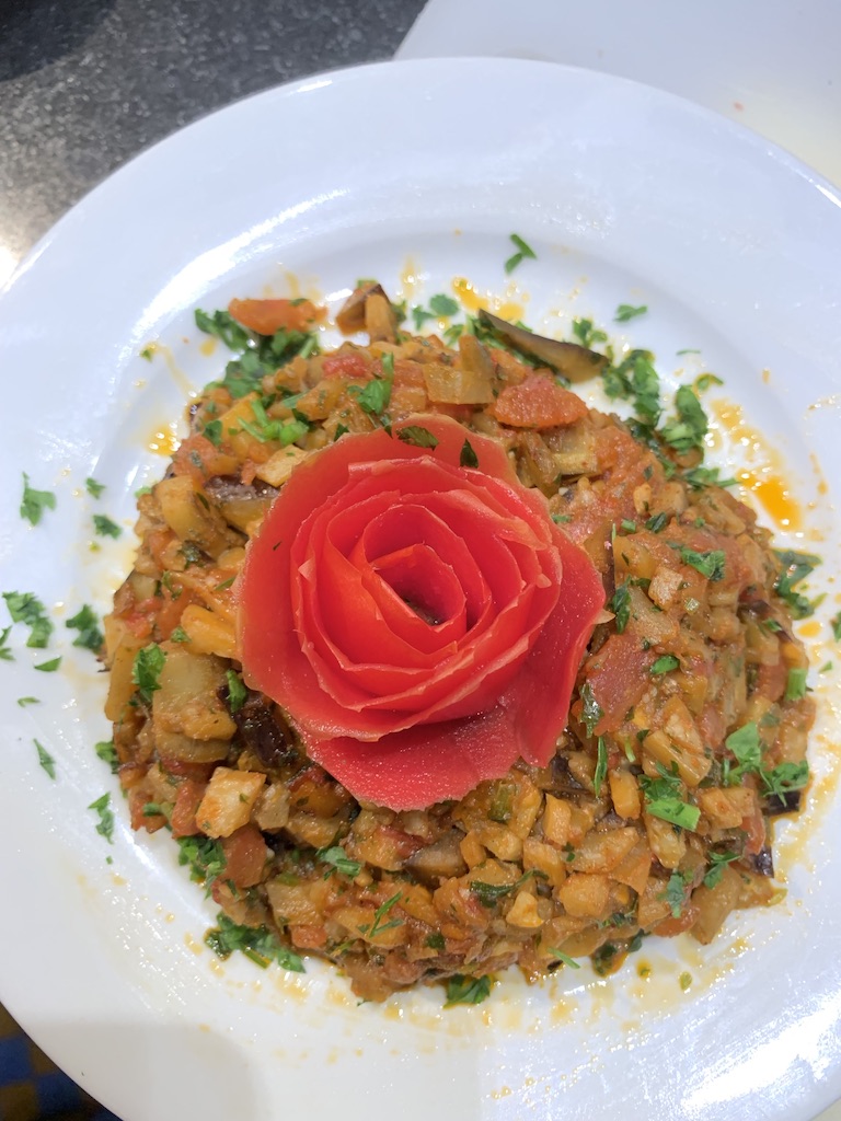 Als voorgerecht maakten we een Zaalouk Salade. Hoofdgerecht was chicken tajine met als bijgerecht Taktuka salade. Het nagerecht was niet door ons gemaakt en was Milk Pastilla. De meningen daarover waren erg verdeeld. Er zat een likeur in die te overheersend was. Aan het eind van de foto’s van deze dag zal ik foto’s van de recepten plaatsen. Vooral het gerecht gemaakt in de tajine was heerlijk. Kan ik aanbevelen.