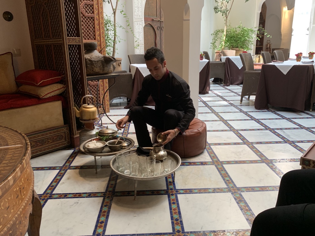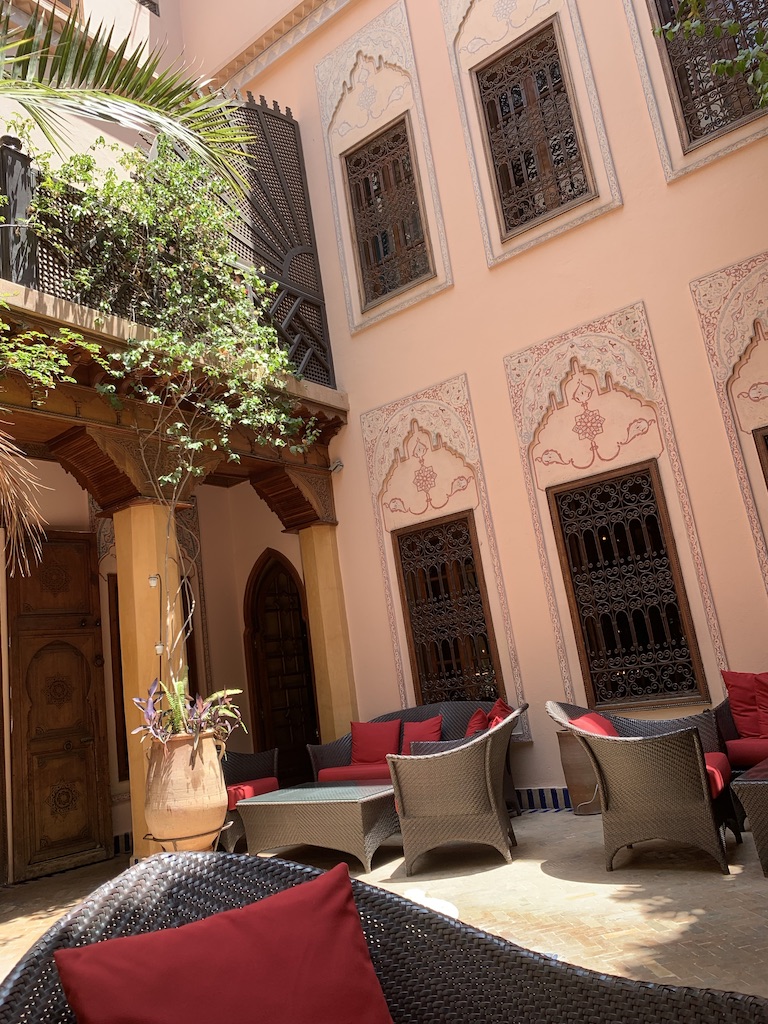 We waren er te vroeg maar dat was geen probleem lekker op de binnenplaats gezeten en een heerlijk drankje gekregen. Als ik ooit nog een keer terug naar Marrakech ga dan ga ik naar dat hotel. Ziet er heel leuk uit en is in het centrum van de stad.