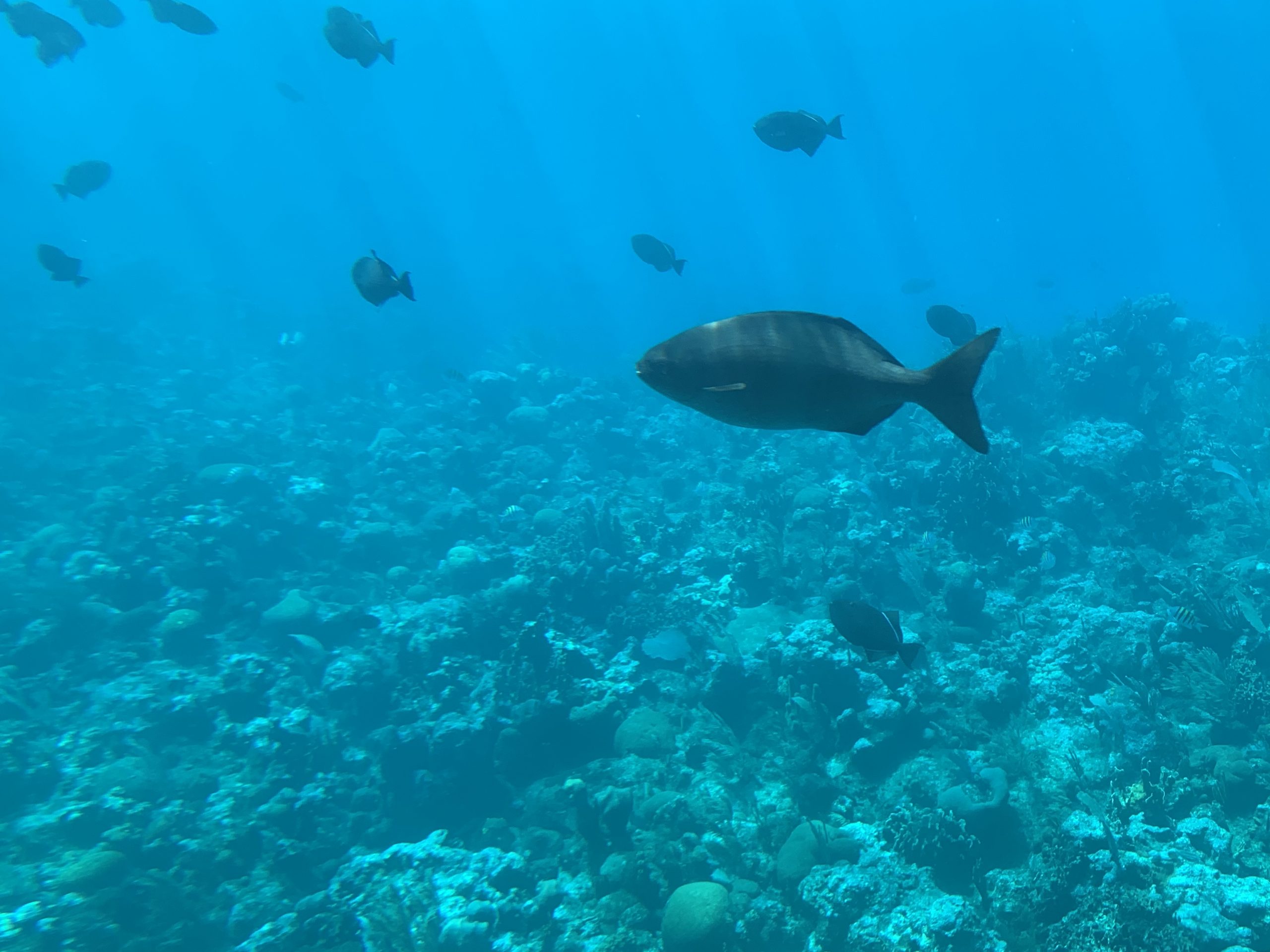 We moesten uiteraard onderin de boot zitten. Was ook weer een hele expeditie. Lindy op haar achterste naar beneden (en later ook weer zo terug). Het was zeker de moeite waard. Mooie kleurrijke vissen gezien in allerlei formaten. Het koraal zag er, voor mij als leek, goed uit. Een volgende keer ga ik beslist duiken. Zou dat graag in Belize gaan doen. Komt nog wel een keertje. Tijd om terug naar het schip te gaan. De taxichauffeur had netjes op ons gewacht.