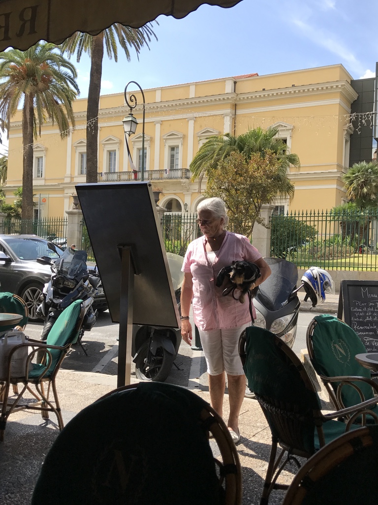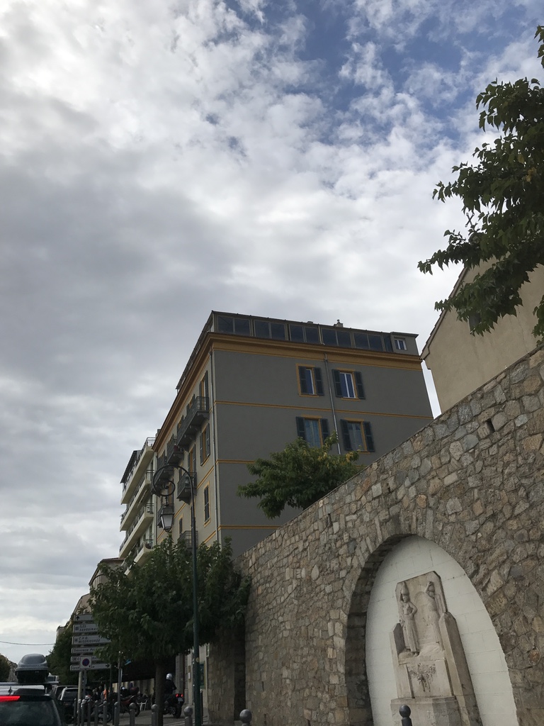 De rit naar Ajaccio leek minder lang en minder bochtig dan van de week toen we deze rit in omgekeerde richting in het donker hebben gemaakt. In de stad was het druk en we hebben er best een tijdje over gedaan om een plaatsje te vinden. De auto aan het water geparkeerd en eerst ergens koffie gaan drinken. Daar waren we beiden erg aan toe. Toen zijn we in de stad gaan wandelen. Leuke winkels maar het opvallende was dat er ontzettend veel Pharmacie winkels zijn en kinderkleding zaken. Echt belachelijk. Toen we ergens een broodje wilden eten zei de eigenaar: oké, dan moet ik even brood halen en hij weg. Verser konden we het niet krijgen ! Ik ben nog in het geboortehuis van Napoleon geweest.