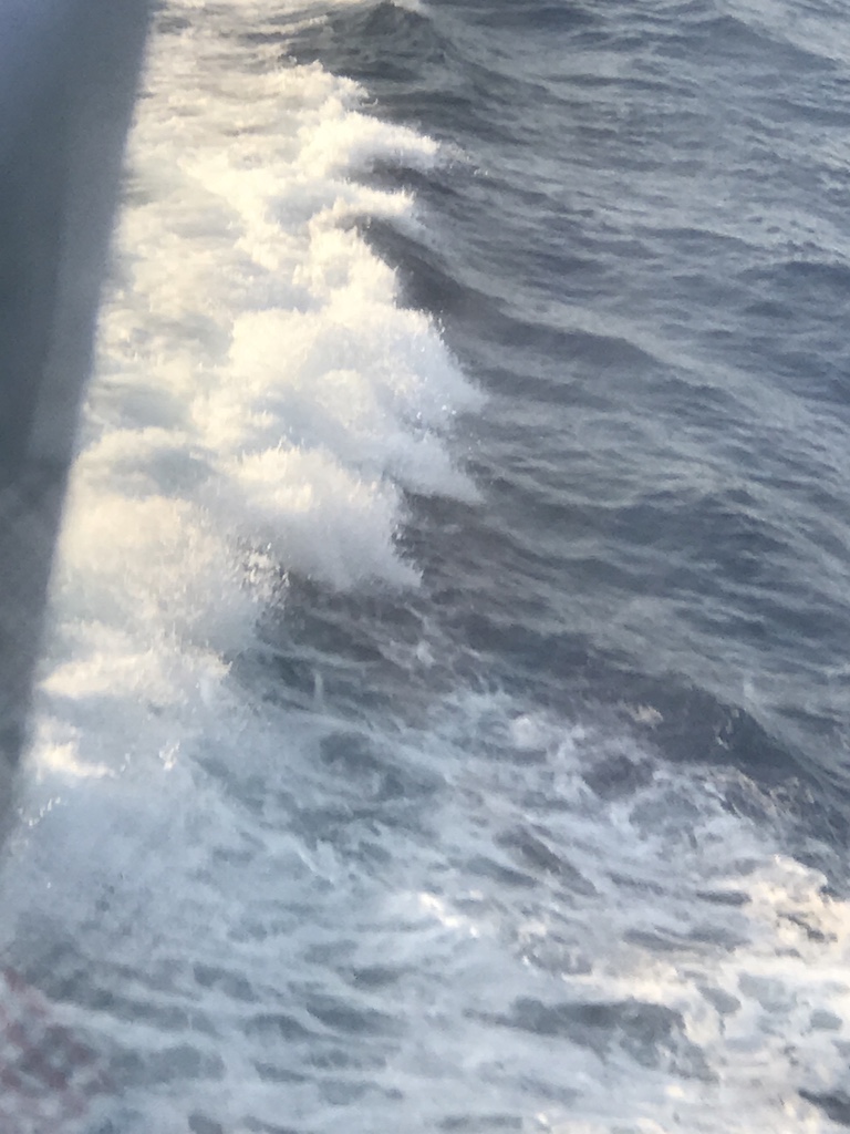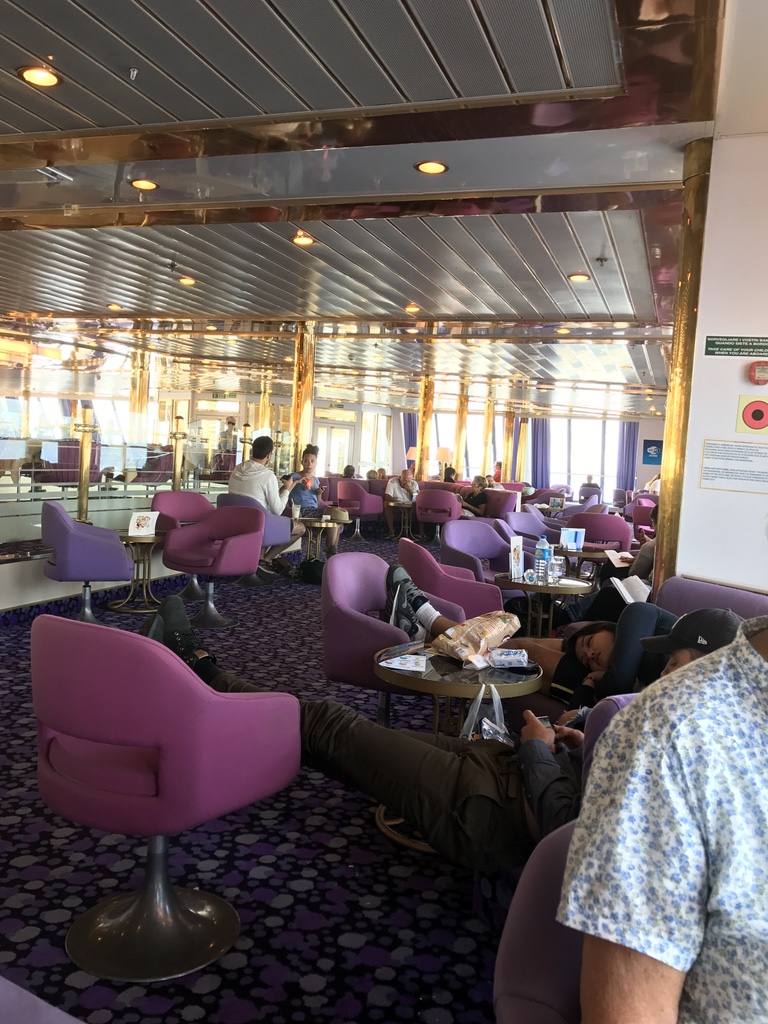 Even had ik last van mijn menière, toen ik naar de bar liep om daar wat te gaan halen. Vlug weer terug naar mijn plekje en wachten tot de boot weer stil lag. Verder geen last meer gehad dus was te verwaarlozen. We dachten dat we helemaal vooraan konden parkeren en zodoende heel snel de boot konden verlaten maar dat was een misrekening. We waren ongeveer de laatsten en moesten een stukje achteruit.