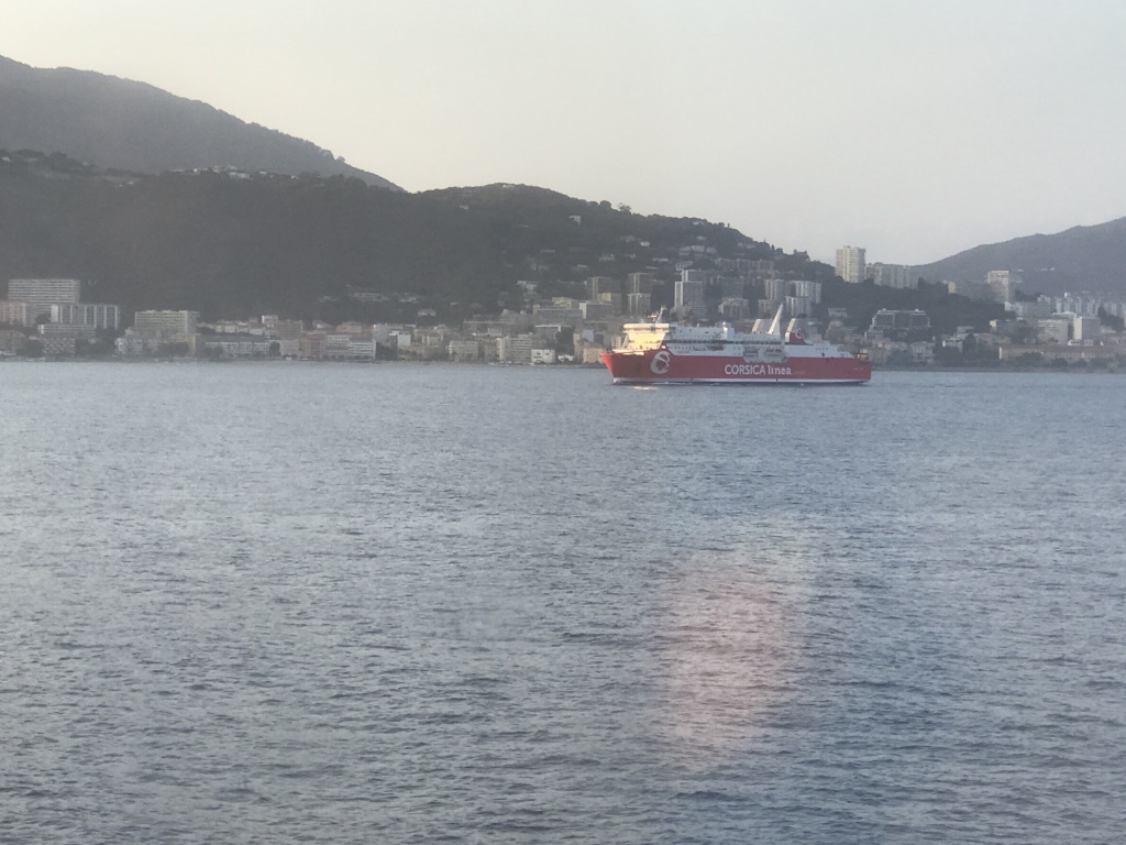 Op ons gemakje ontbeten en daarna om half 12 vertrokken richting Nice vanwaar we met de boot naar Ajaccio zijn gevaren. Was een kalme zee en we konden ons lekker ontspannen. De overtocht duurt toch altijd nog zo’n 5,5 uur. Alle tijd genomen om te lunchen en later bij het raam in de foyer gaan zitten.