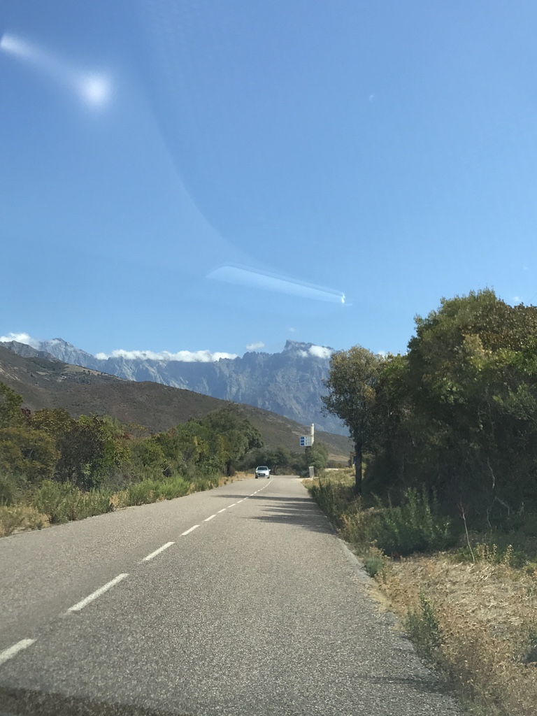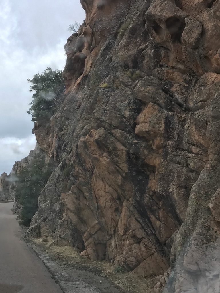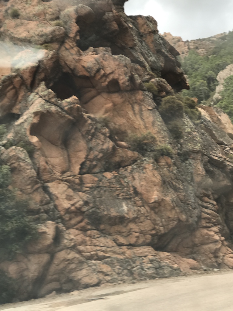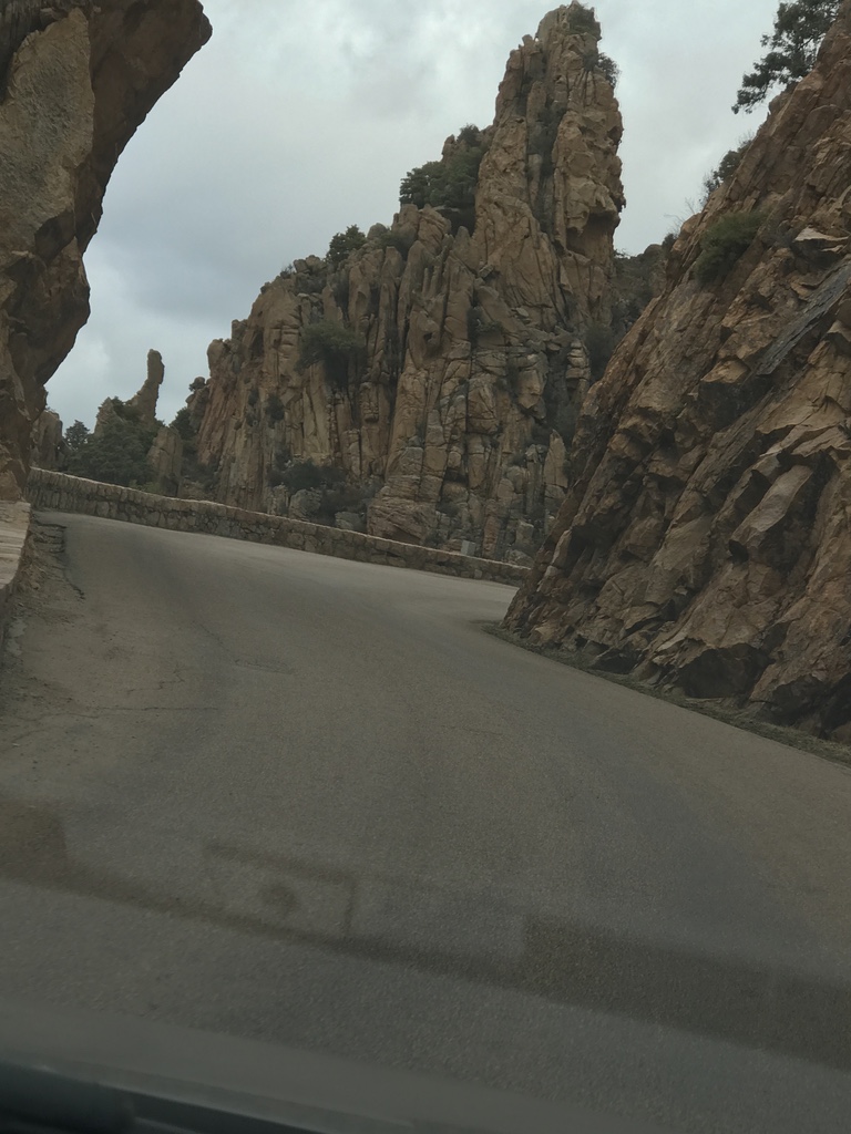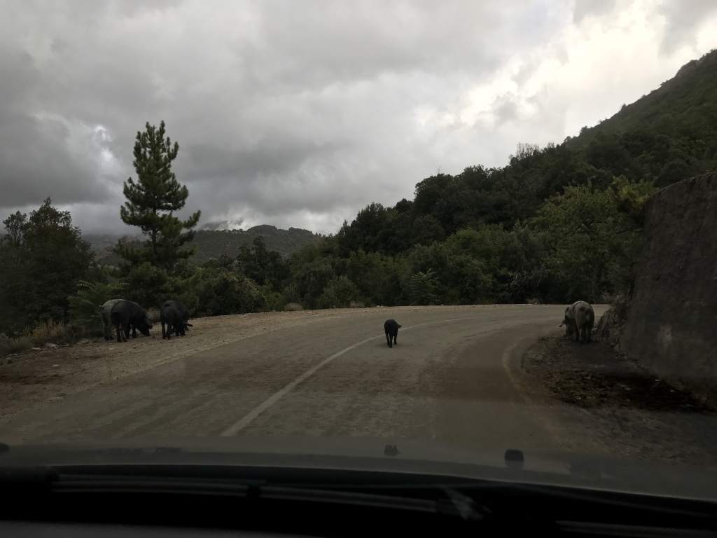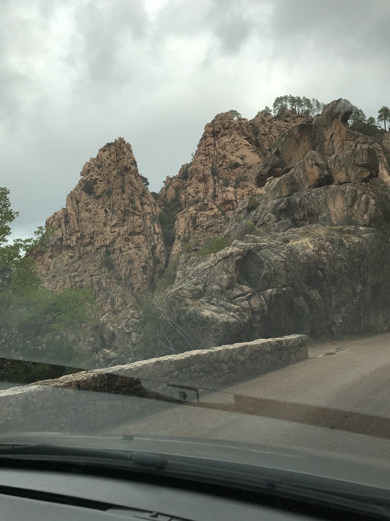 Het was werkelijk een sprookje. Toen naar Calanques de Piana en volgens de reisgidsen het plaatsje Piana wat het mooiste van heel Corsica zou moeten zijn. Nou dat was een grote teleurstelling. Zonde van het omrijden alhoewel de Calanches schitterend waren. Helaas kon je niet langs de kant van de weg stoppen. Daar was het veel te gevaarlijk voor. Toch nog een paar leuke foto’s gemaakt. Toen op weg naar ons hotel via Marignan, Evisa en Albertacce. Onderweg allemaal loslopende dieren gezien, koeien, varkens, geiten en kippen.
