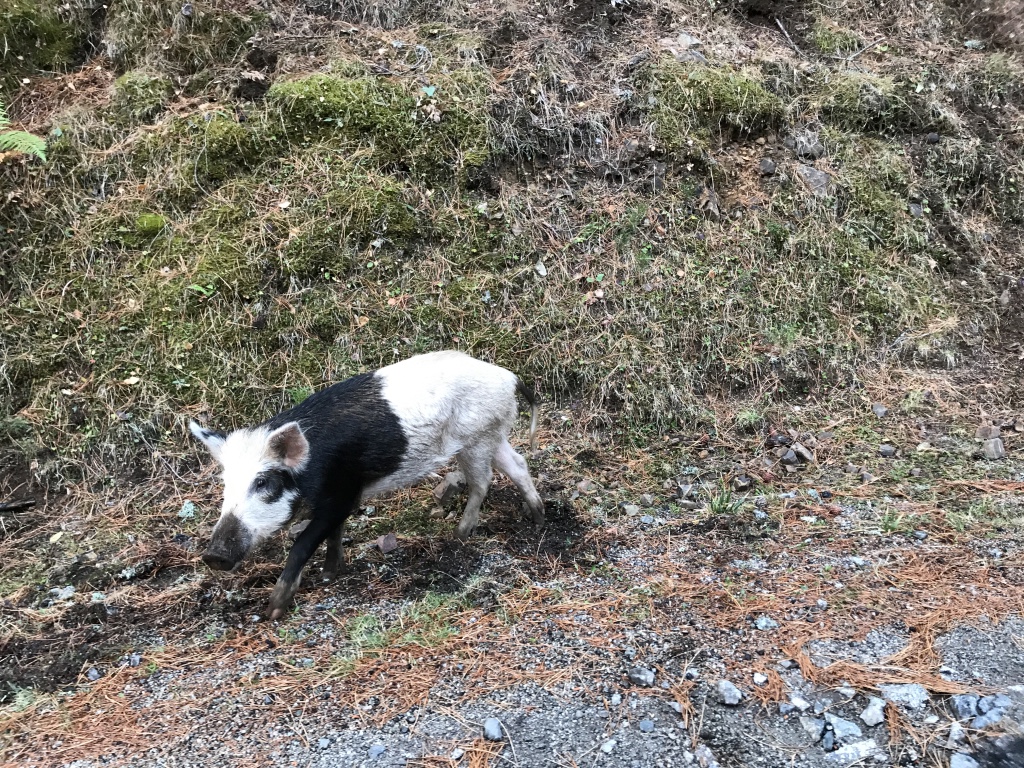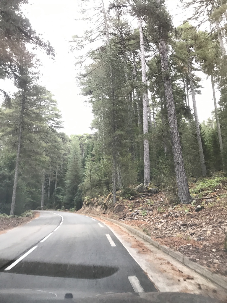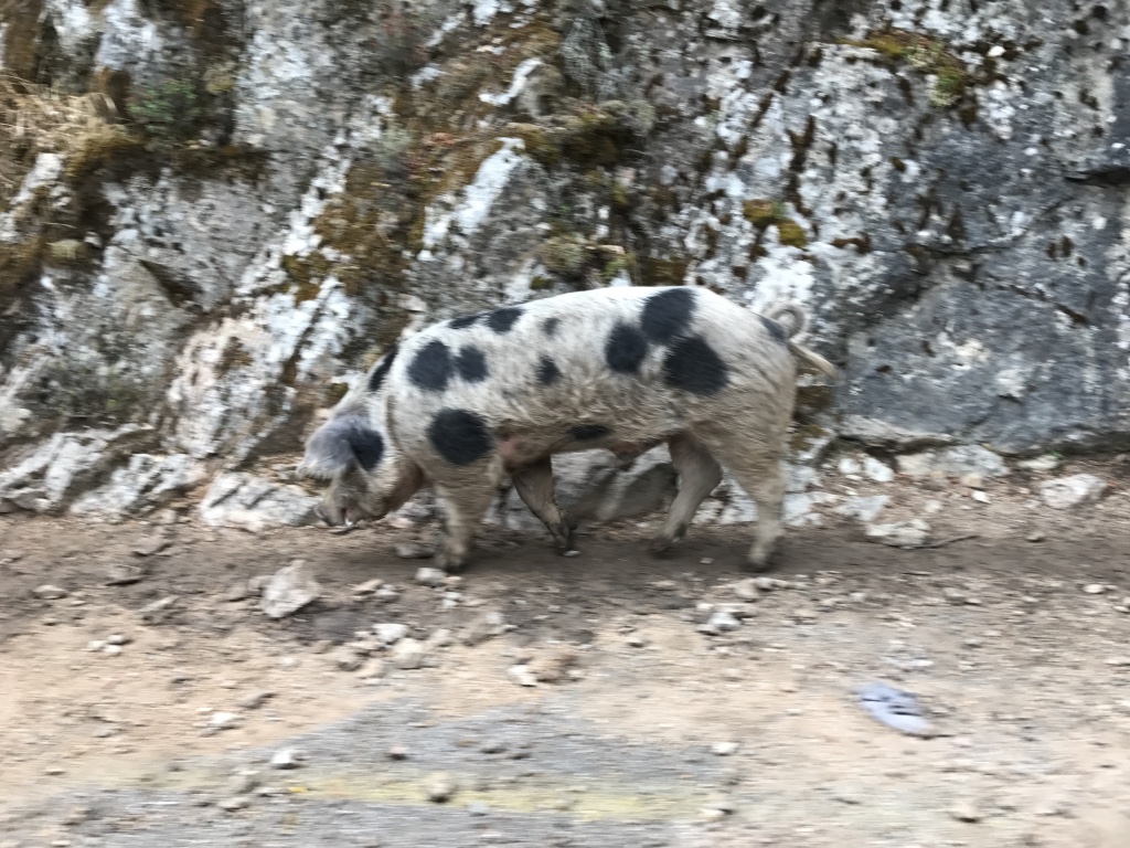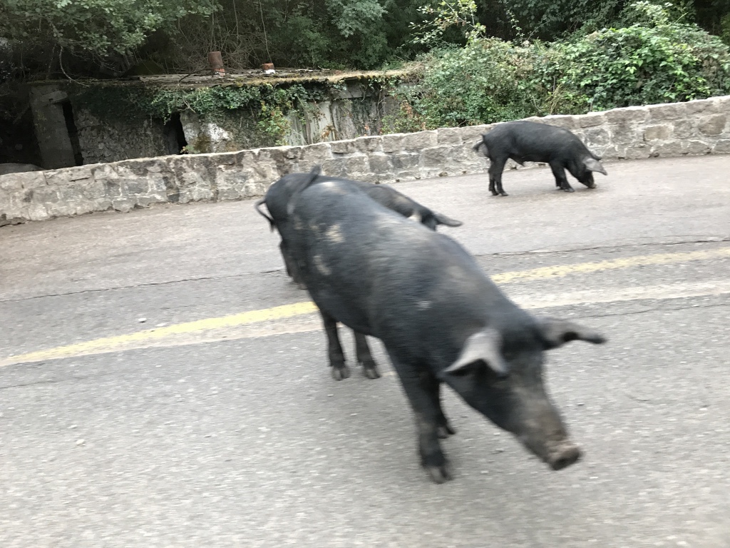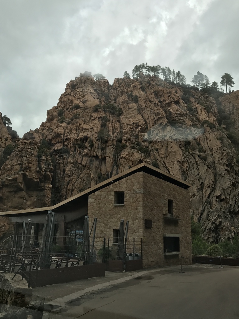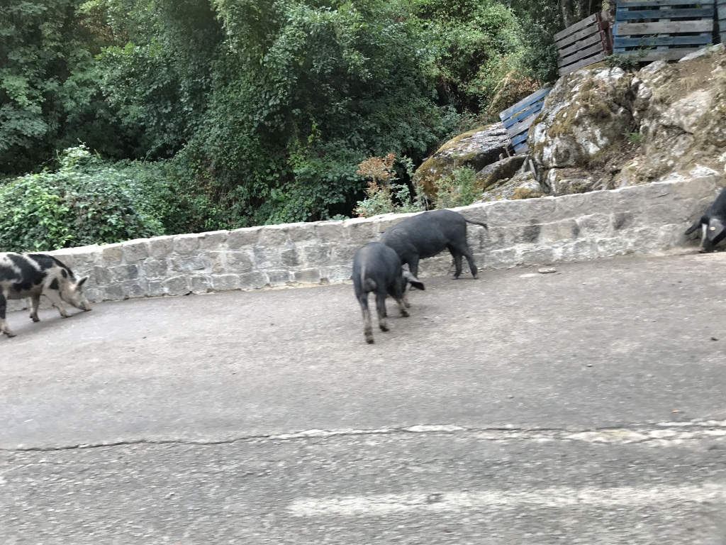 Het was werkelijk een sprookje. Toen naar Calanques de Piana en volgens de reisgidsen het plaatsje Piana wat het mooiste van heel Corsica zou moeten zijn. Nou dat was een grote teleurstelling. Zonde van het omrijden alhoewel de Calanches schitterend waren. Helaas kon je niet langs de kant van de weg stoppen. Daar was het veel te gevaarlijk voor. Toch nog een paar leuke foto’s gemaakt. Toen op weg naar ons hotel via Marignan, Evisa en Albertacce. Onderweg allemaal loslopende dieren gezien, koeien, varkens, geiten en kippen.