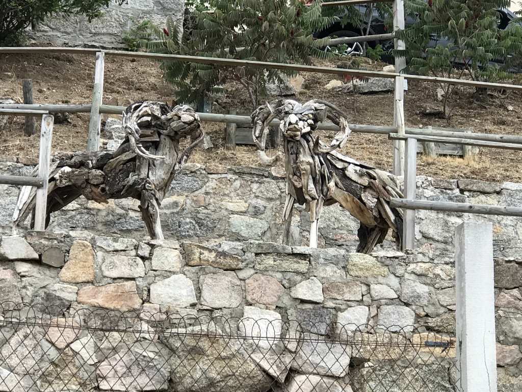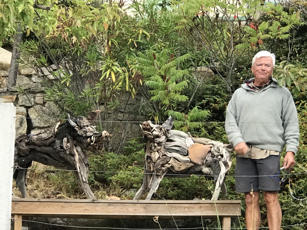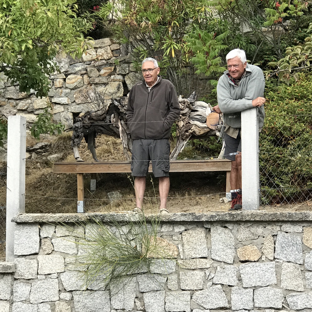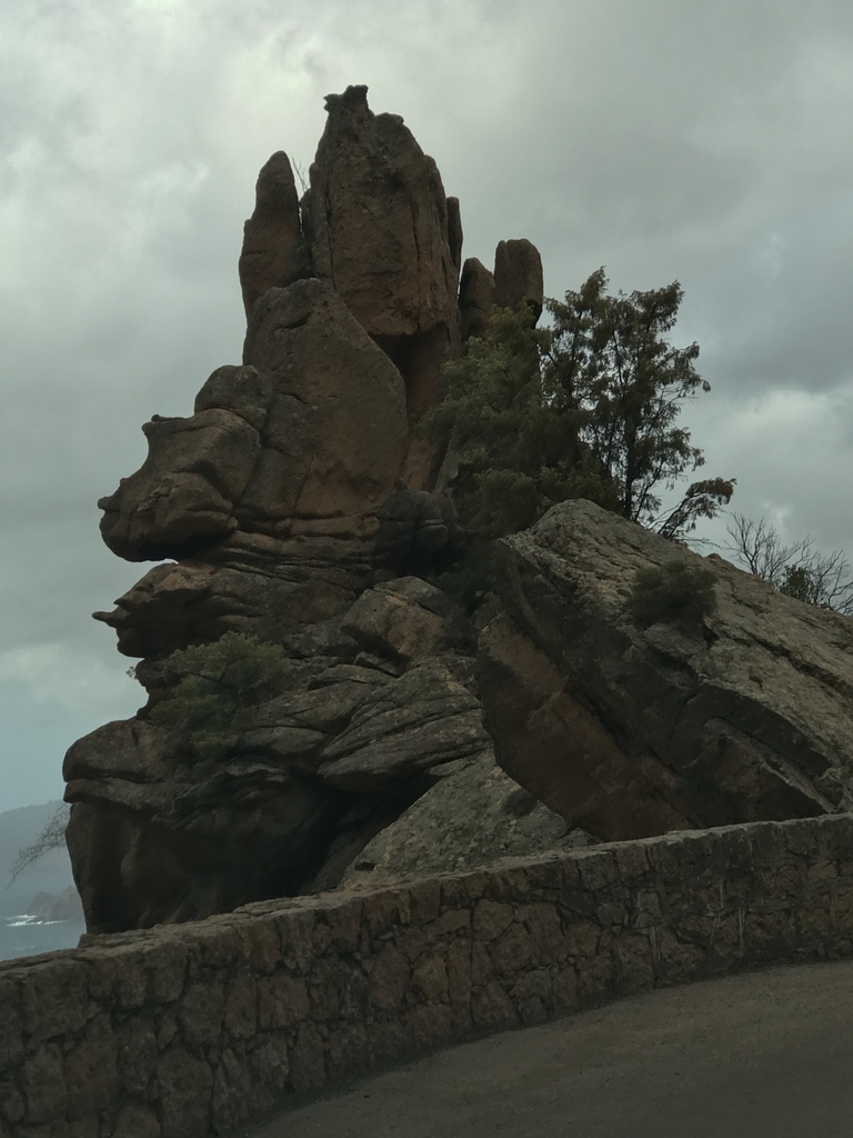 Dat kan hier allemaal. In Evisa stonden in een tuin een paar heel mooie beelden die gemaakt waren van boomstammen en wortels. Terwijl we die aan het bewonderen waren kwam de eigenaar en hij heeft nog enige uitleg gegeven. Helaas moesten we weer verder want het had best even wat langer mogen duren. Hij was beslist een zonde waard.