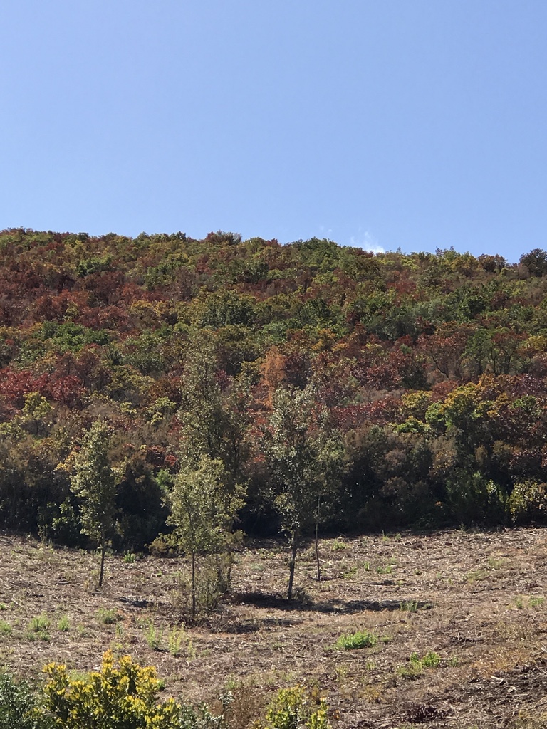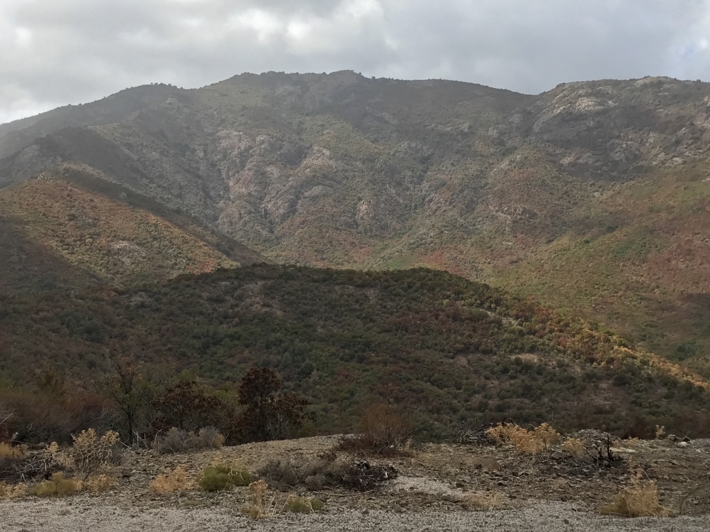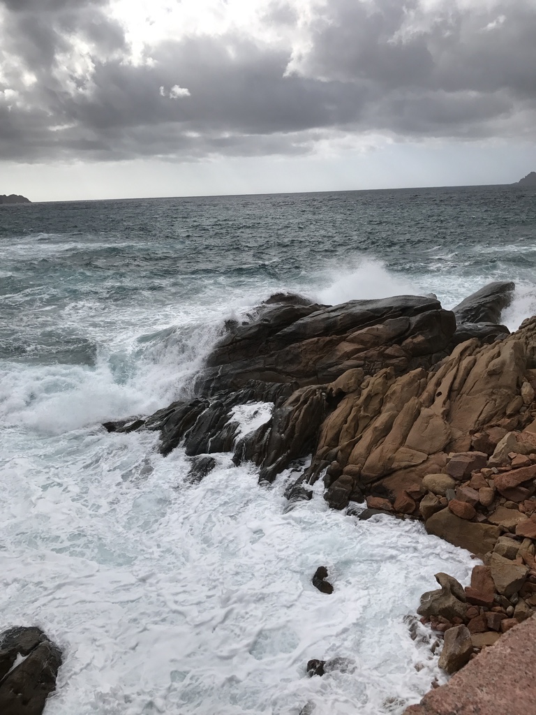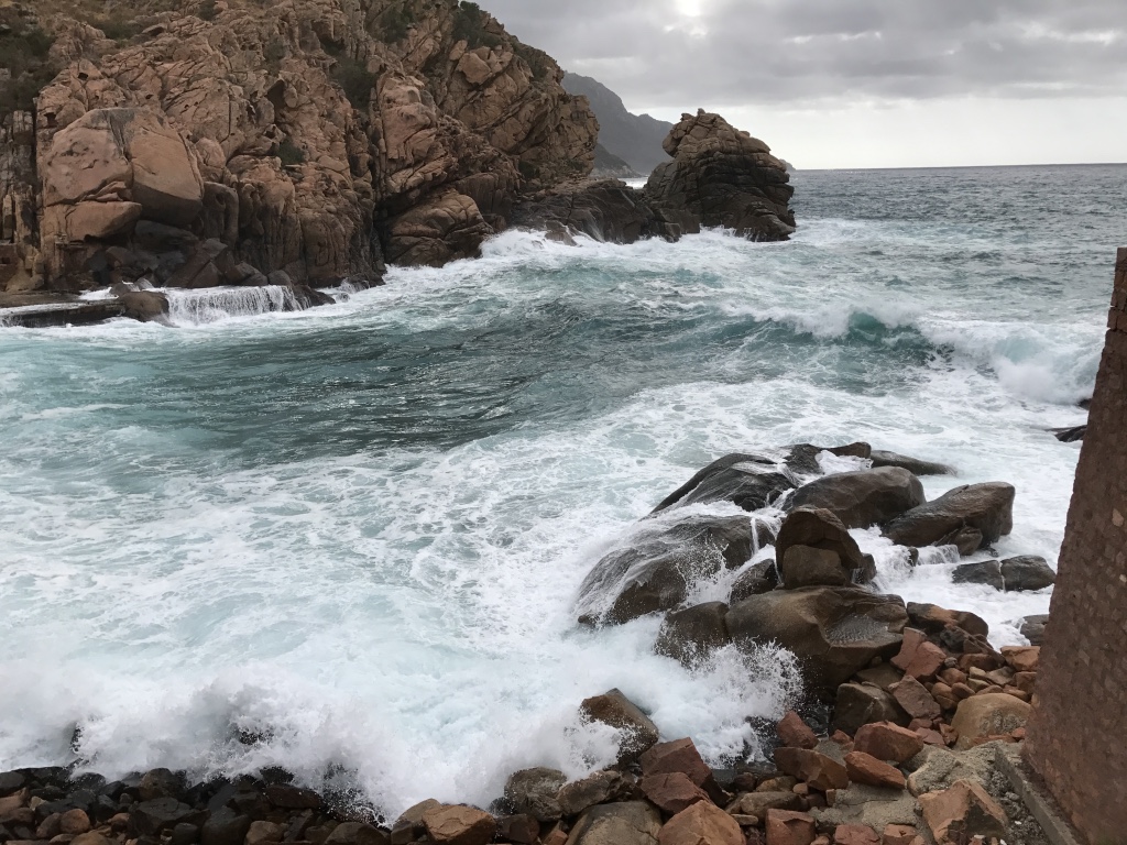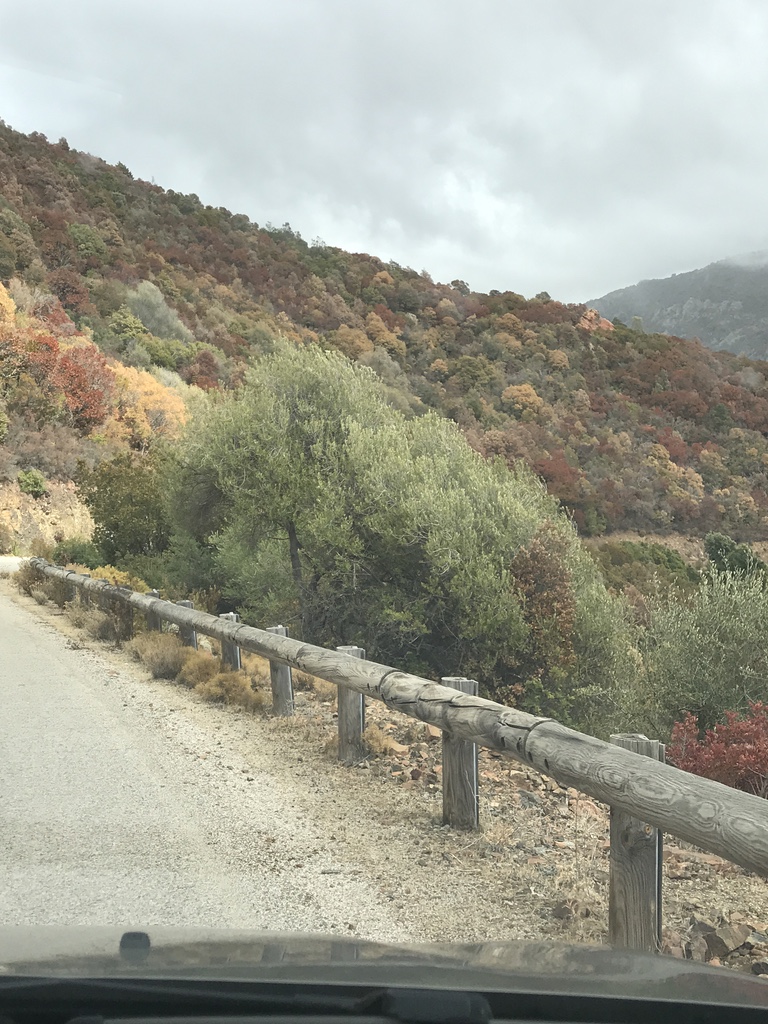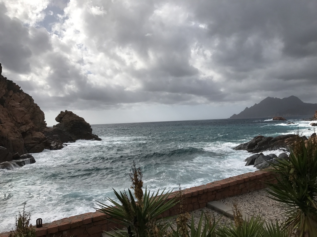 Het water was lekker ruig en daar een paar mooie foto’s van gemaakt. Aan de haven geluncht en wat rond gelopen en daarna weer de kustlijn verder gevolgd via Calenzana, Galéria, Osani, Curzo, Pattinello naar Porto. Dat was het mooiste dorp dat we hebben gezien. Het schiereiland Scandola behoort tot de World Heritage Site van Unesco Werelderfgoed. Deze prachtige rotsmassa ligt tussen de Golfe de Galeria en de Golfe de Girolata in. De prachtige rode kliffen, grotten en de bijzondere flora en fauna zijn uitzonderlijk. Alles was hier al getooid in de schitterende kleuren van de Indian Summer.