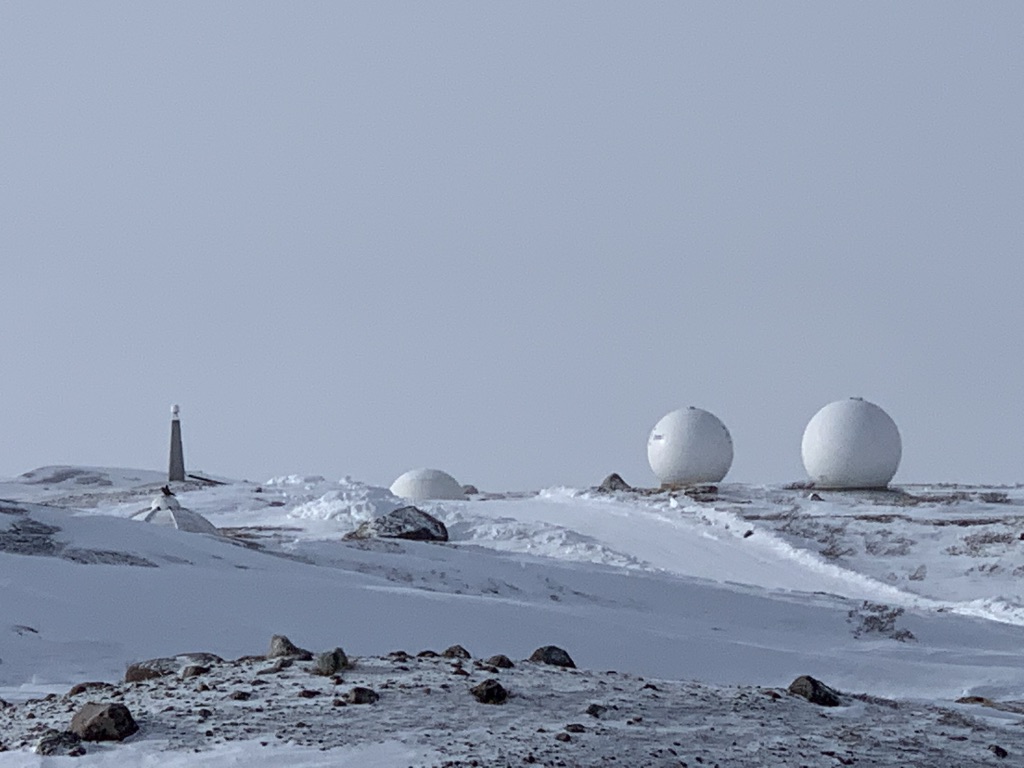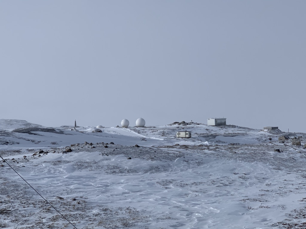 Helemaal boven op de berg staan diverse apparaten die gebruikt worden voor weerstations. Groenland is heel bepalend voor het weer in Europa. Zal daar eens op gaan letten, dat wist ik niet.