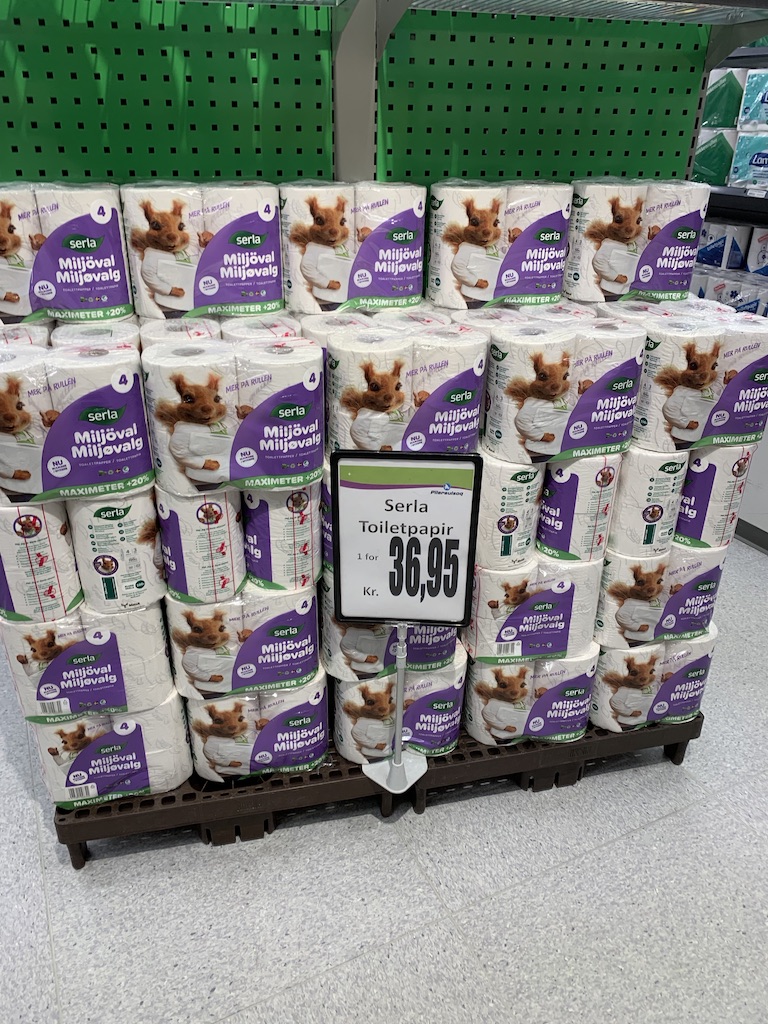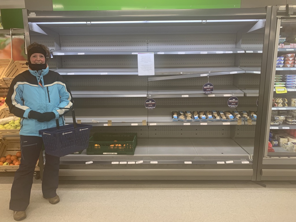 De supermarkt lijkt redelijk op die van de gemiddelde kruidenierszaak in Europa. Wat groot is dat is de diepvries afdeling maar wat de groenten afdeling betreft is het een treurige bedoening. Het aantal verse producten kan gemakkelijk in een klein winkelwagentje. De prijzen zijn torenhoog. Van diverse producten een foto gemaakt. Bijvoorbeeld een rol Hollandse beschuit kost € 2,25. Vier rollen toiletpapier € 5,25. In beide gevallen was dat ook in de reclame. Ik ben niet zo prijsbewust maar dat is bij ons toch veel goedkoper, denk ik.