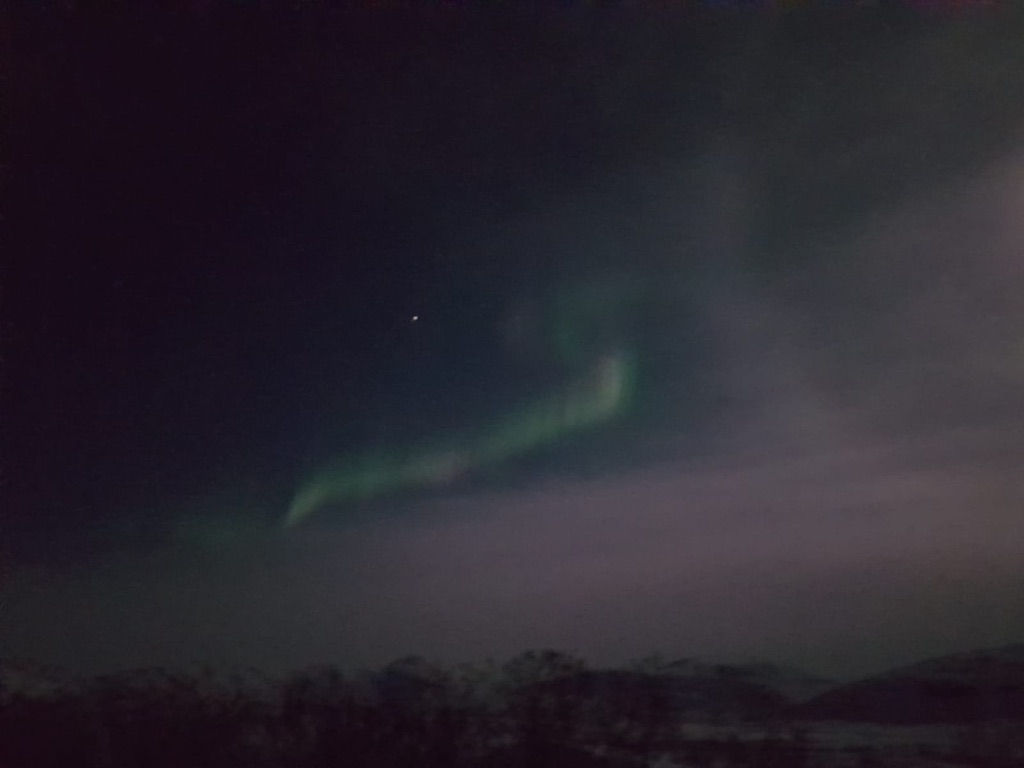Na het diner ‘s avond het noorderlicht gezien. Was boven het meer en wel een mooi gezicht toch nog steeds niet dat spectaculaire dat we hoopten mee te maken.