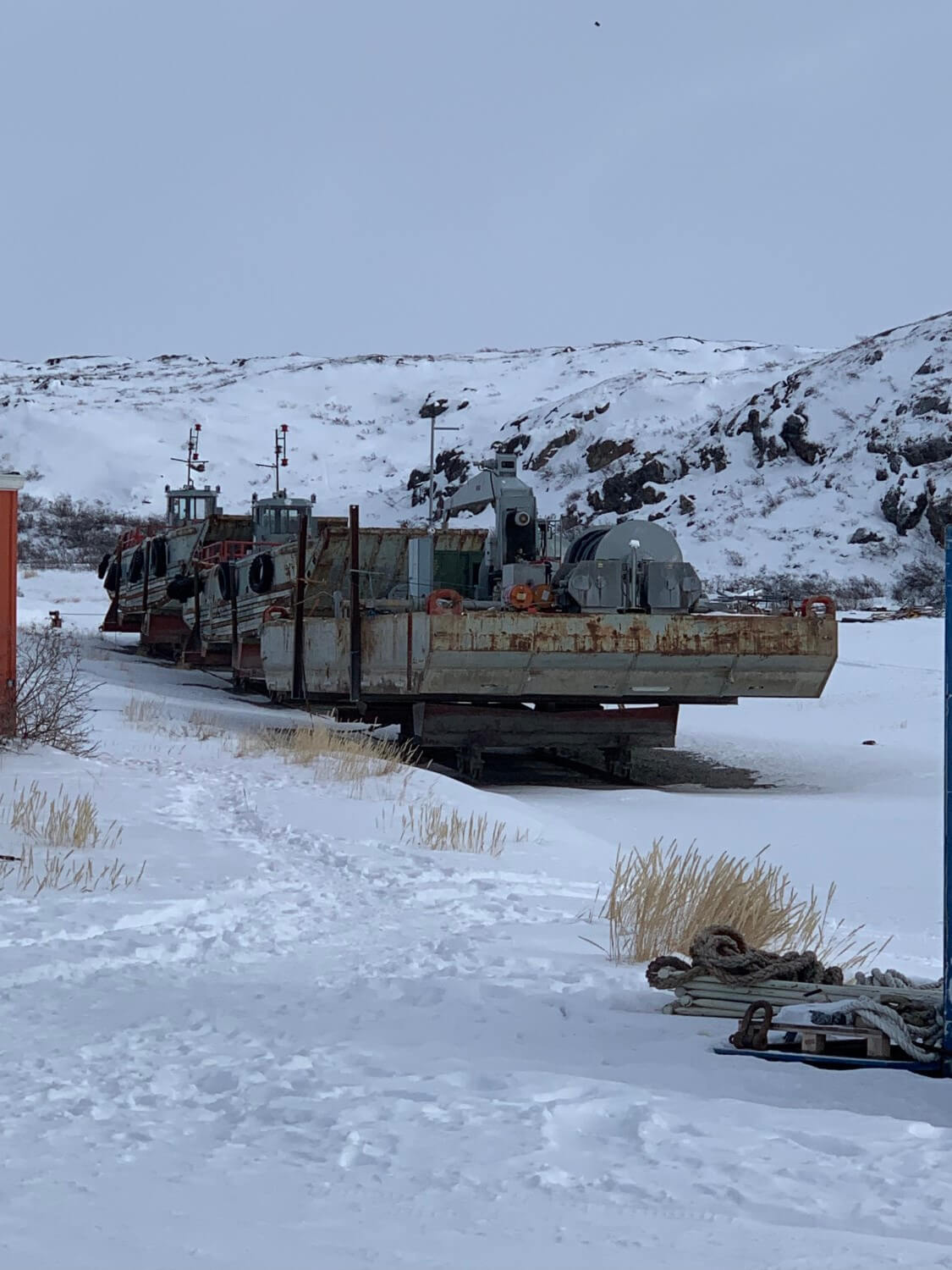 De haven die nu helemaal is dichtgevroren wordt in de zomermaanden intensief gebruikt. In ieder geval om goederen aan te voeren want er zijn maar twee mogelijkheden; per boot of per vliegtuig. Het eerste is uiteraard veel goedkoper.