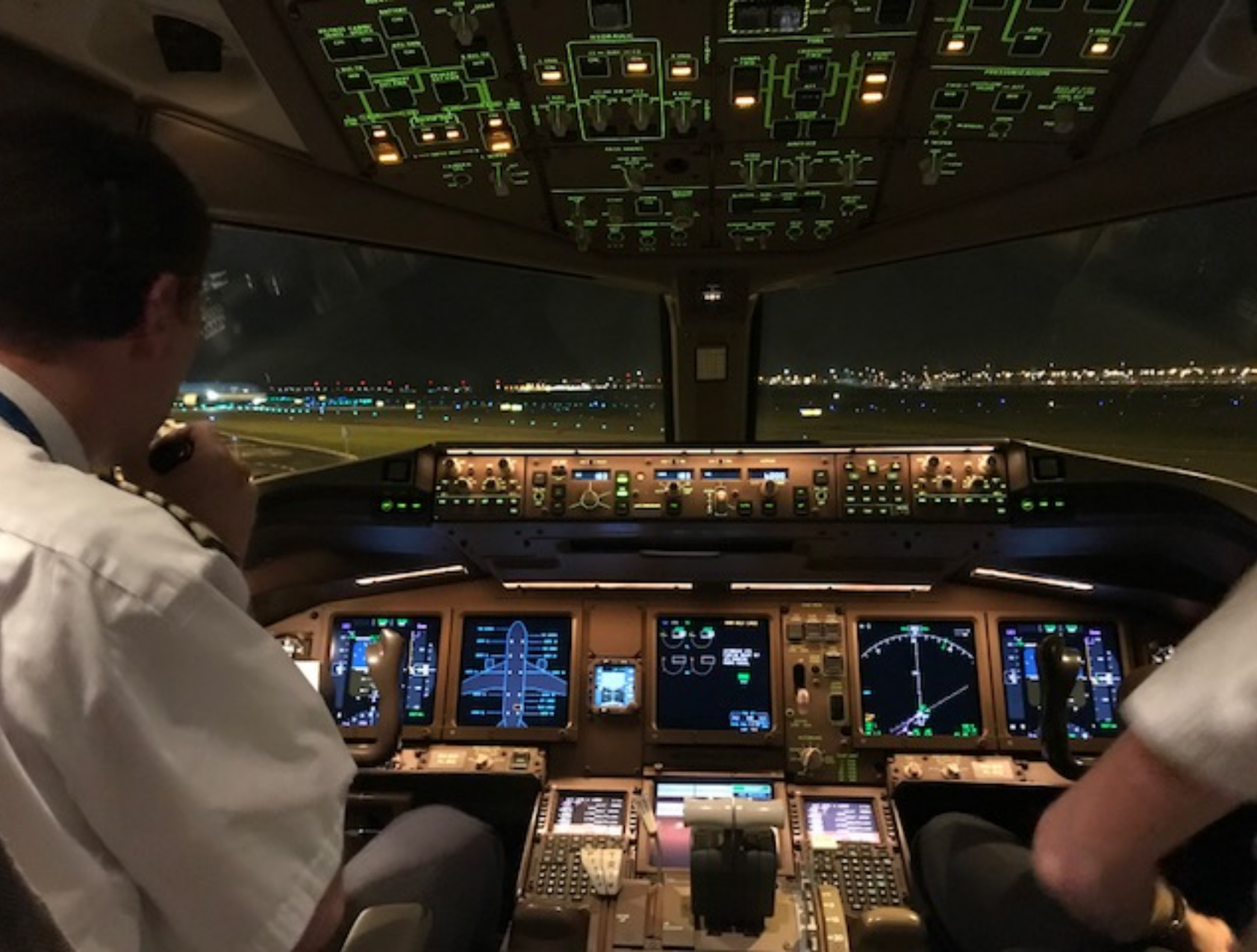 Léon kwam nog even langs tijdens zijn rust (op zulke lange vluchten zijn ze met zijn vieren zodat er ook door de bemanning geslapen kan worden) en daarna zijn we heerlijk gaan pitten en dromen van de dingen die zouden komen als we wakker zouden worden. Een geweldige start van een hopelijk mooi avontuur.