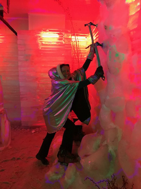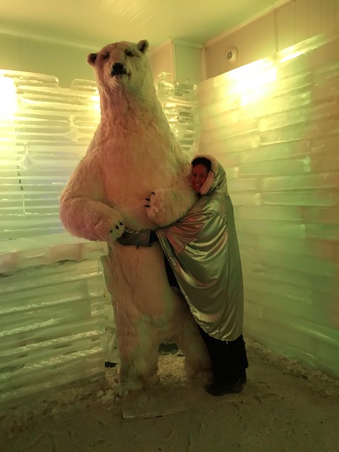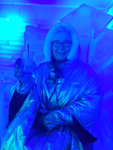 Vervolgens het stadje/dorpje ingegaan. Eigenlijk is het één grote weg met veel winkeltjes en restaurantjes. Het doet een beetje houthakkerig aan maar heeft ook iets van een wintersportplaatsje. Het is er gemoedelijk en leuk, gewoon een heel lief plekje. Iedereen is vriendelijk en er hangt een heel leuk sfeertje. Natuurlijk moesten we de eerste ijsbar ter wereld bezoeken. Was er eentje met discomuziek en veel lampjes die steeds van kleur wisselden. Ik redde het nog net zonder duizelig te worden. Wat drank betreft kon je uit van alles en nog wat kiezen. Ik heb gekozen voor een lekkere Argentijnse likeur. Mierzoet !! Amber, de BOB, voor ranja met een rietje.