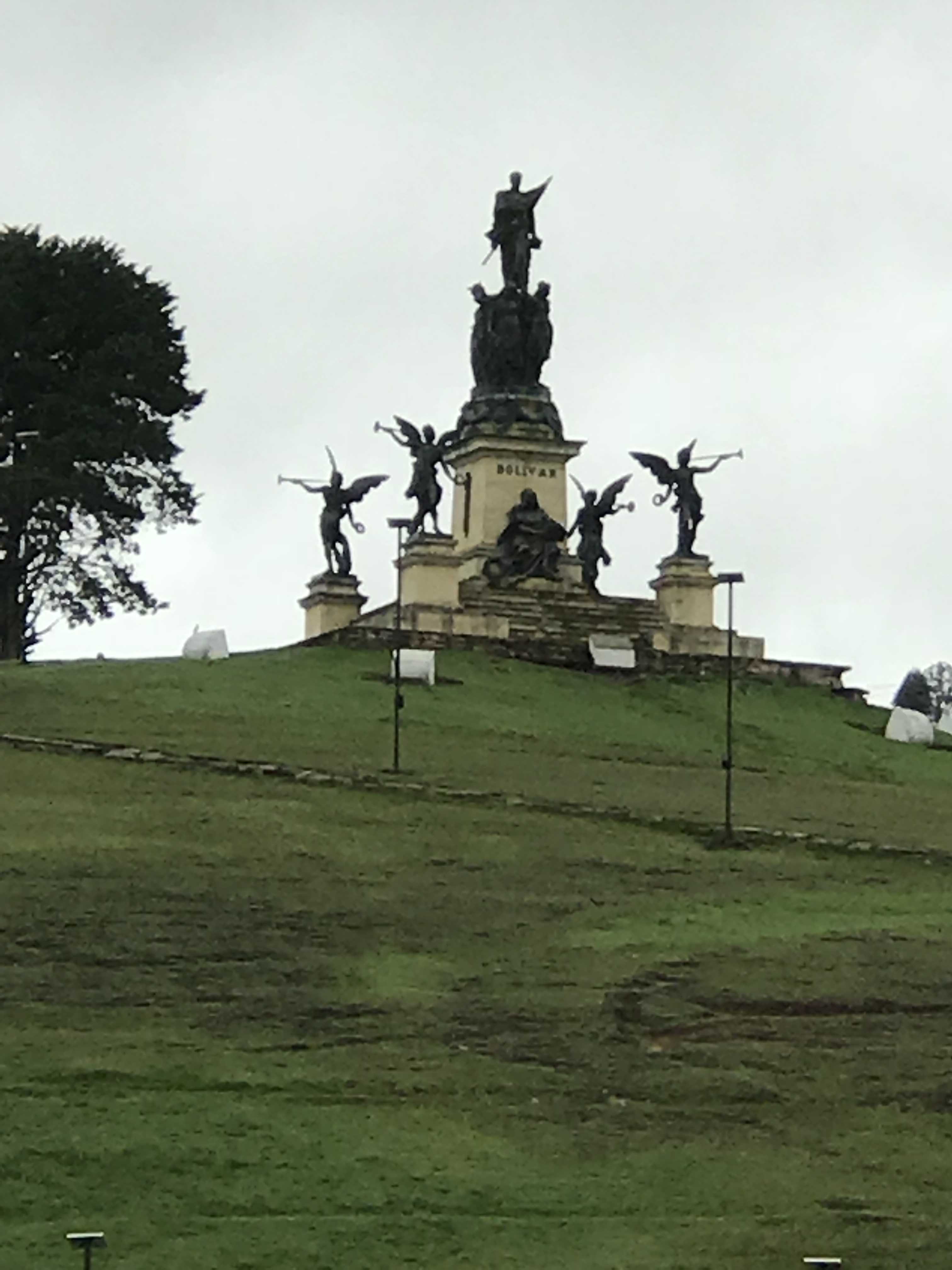 Helemaal boven staat een enorm stadbeeld van hem met daaromheen 5 engelen. Die symboliseren de 5 landen die onder zijn leiding van de Spanjaarden zijn bevrijd. Colombia, Ecuador, Venezuela, Peru en Bolivia het land dat ook naar hem is vernoemd.