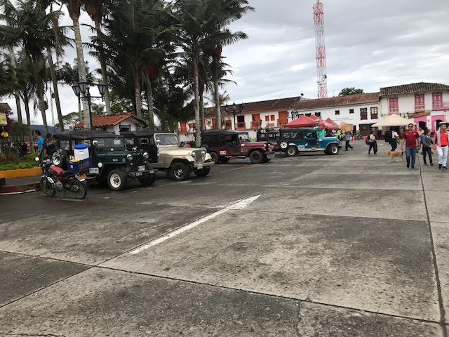 Met Amerikaanse legerjeeps, de zogenaamde “willy’s”, zijn we in zo’n 30 minuten naar de Valle de Cocora gereden.