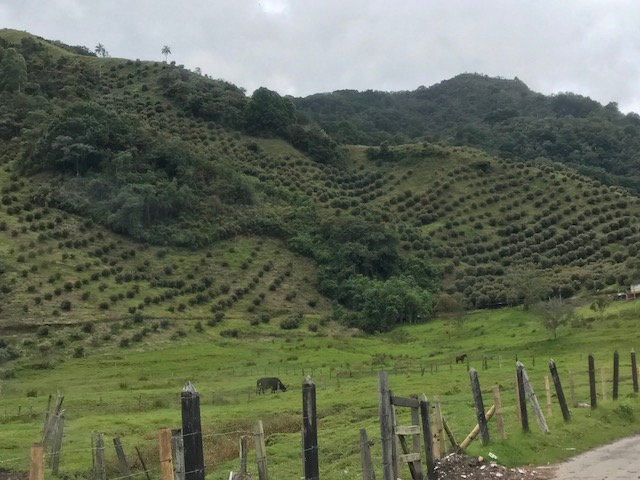 De finca waar we verblijven ligt prachtig tussen de bergpieken van de Andes en wordt omringt door koffie- en bananenplantages.