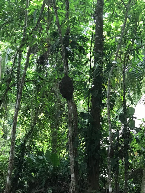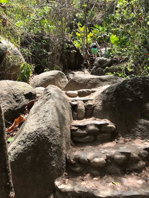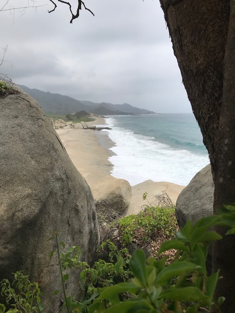 Na een heel stevig ontbijt met het busje vertrokken om een lange wandeling door de uitlopers van het Andesgebergte in het Parque Nacionale Natural Tayrona te gaan maken. Het was om 8 uur al 30 graden. Na een paar uur buffelen kwamen we bij een geweldig mooi strand en daar zijn we toen neergestreken. Tocht was best zwaar veel klimmen en klauteren maar we hebben het gehaald. Moest heel vaak denken aan de ontvoering van Derk Bolt. Kan me er intussen wel een voorstelling van maken wat die heeft meegemaakt. Bij de terugweg de route genomen die ze met de paarden nemen. Was wel langer maar iets vlakker. Hebben hier 2 uur over gedaan.