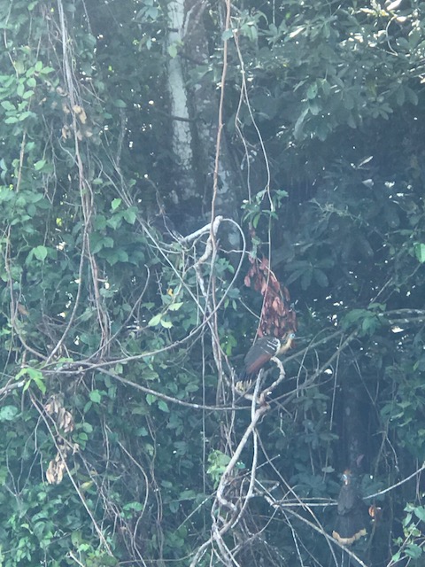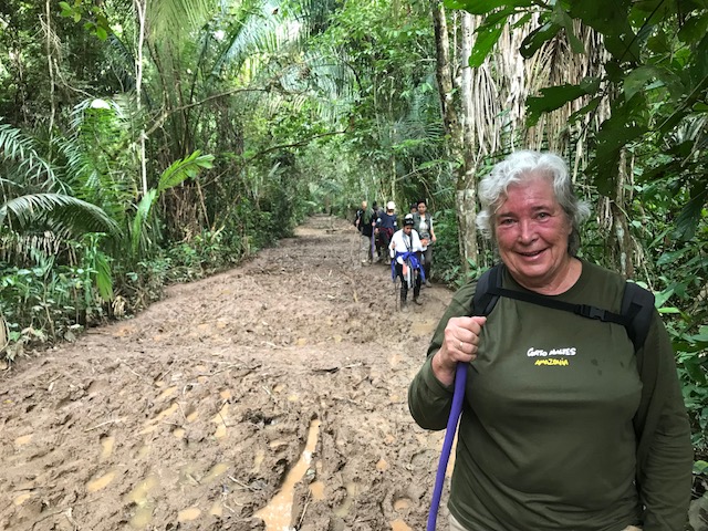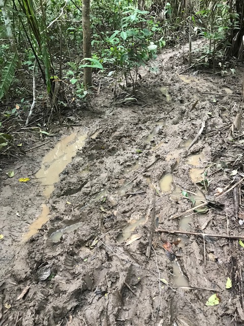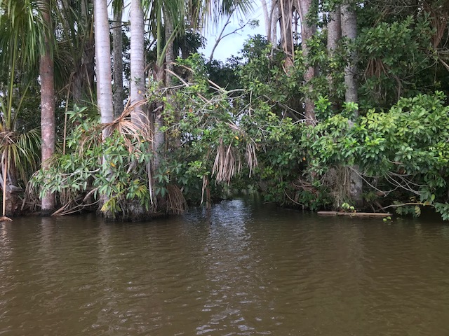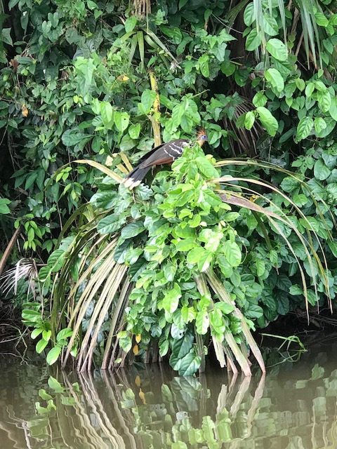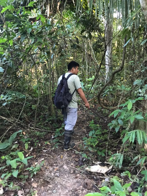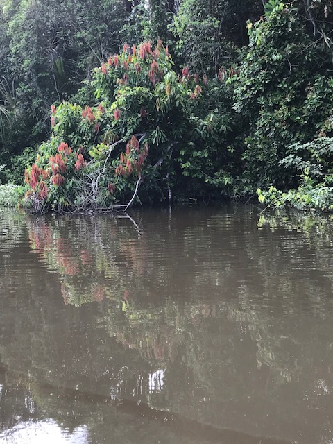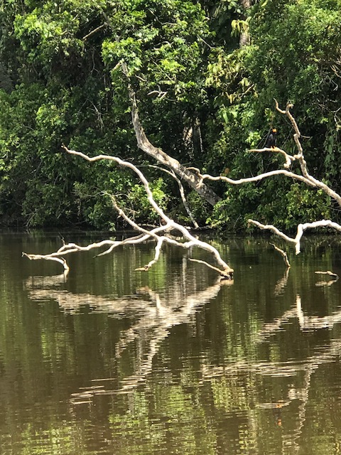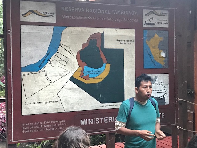 Dit is achteraf gezien een van de zwaarste dagen geweest. We staan voor dag en dauw op en gaan met de boot eerst een stuk varen om vervolgens door de jungle te lopen naar Lake Sandoval. Het pad is modderig want het heeft de afgelopen dagen behoorlijk geregend. Onderweg wijst de gids ons op de medicinale planten, de tropische bomen, insecten vlinders en vogels.