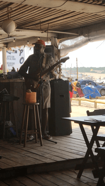 Het was er gelukkig niet erg druk en al snel had ik een plekje voor de auto en ook niet al te ver weg van het strand en toen hup badpak aan en me daar geïnstalleerd en smeren, smeren en nog eens smeren. Op het strand lagen ontzettend veel bootjes. Ik heb geen idee of die nog gebruikt worden of er alleen maar voor de sier lagen. Wel een leuk gezicht in ieder geval. Het was heel broeierig. Op enig moment gingen de mensen inpakken en vertrekken en alhoewel ik dat wel vreemd vond toch niet al te veel aandacht aan besteed. Daarna een hapje gaan eten en van de een op het andere moment was het noodweer. Dat kwam van een kant die aan mijn blik was onttrokken en nu begreep ik ook waarom de mensen vertrokken waren. Onweer, zo heb ik het nog nooit gezien, en stortregen en harde wind, ongelooflijk. Na verloop van tijd regende het in het tentje ook behoorlijk. Daar was het dak duidelijk niet tegen bestand maar nog wel steeds bij een temperatuur van bijna 30 graden en volgens mij vonden ze het allemaal heel gewoon. Gelukkig werd er voor muziek gezorgd en mijn gegrilde zalm smaakte uitstekend !
